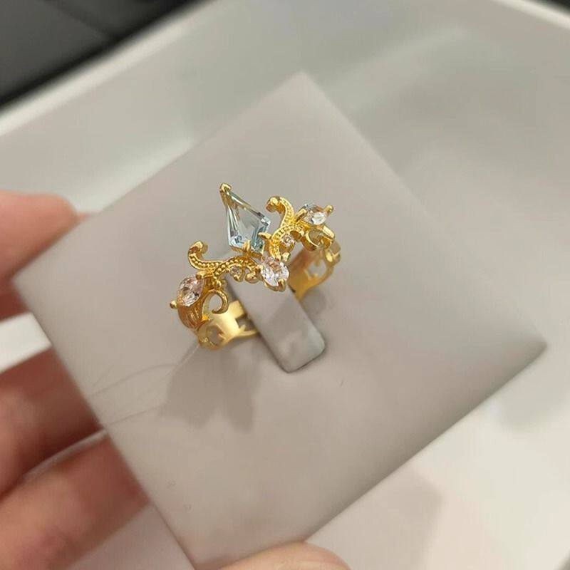 中古蓝色闪钻辛德瑞拉戒指复古vintage宫廷风开口食指戒