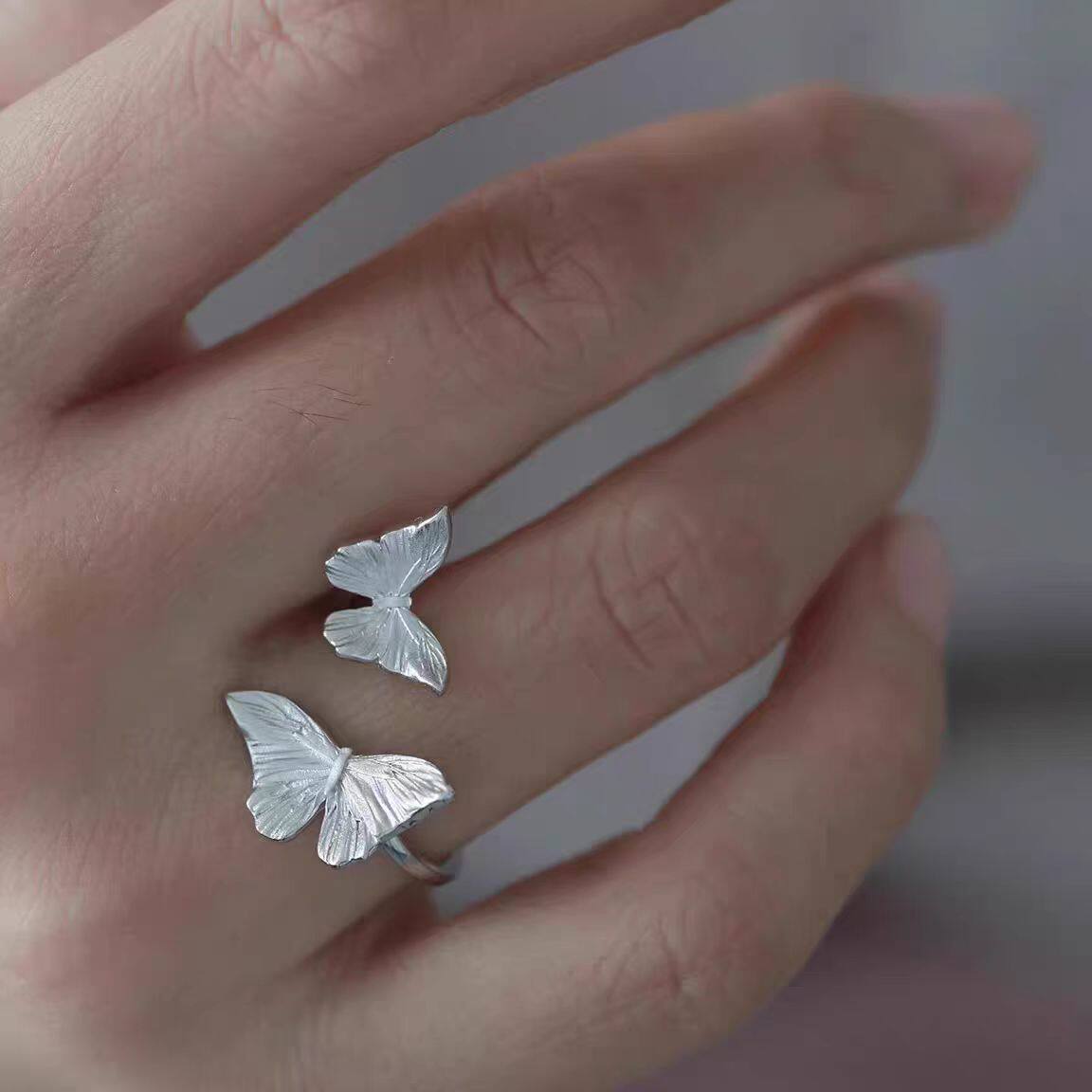 小众创意设计蝴蝶开口戒指女轻奢复古趣味萌个性气质可调节指环