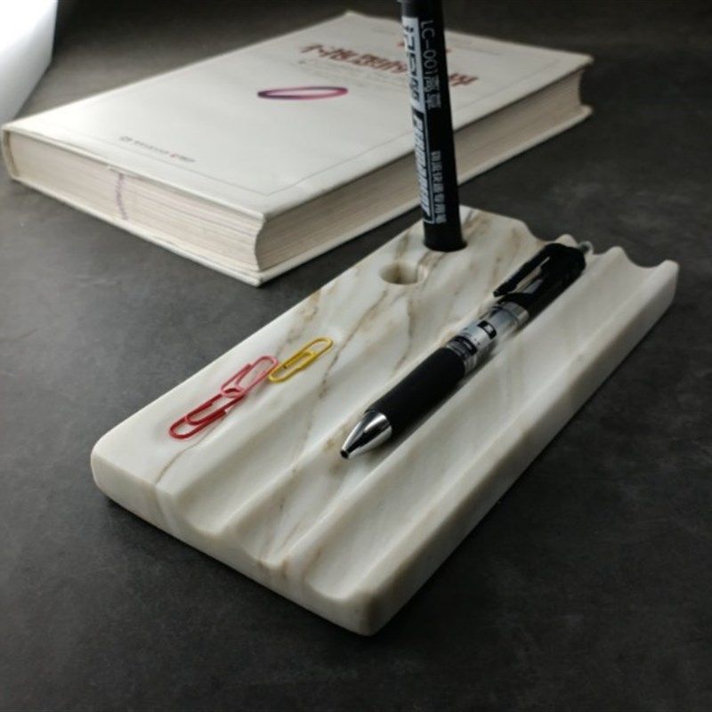 天然大理石笔架笔座笔托收纳托盘样版间桌面办公桌化妆刷画笔摆件