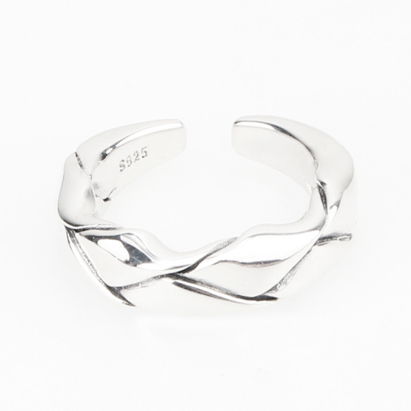 s925纯银饰简约光面菱形开口戒指男百搭个性日韩潮流食指环送男友