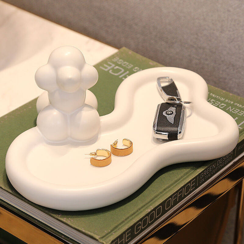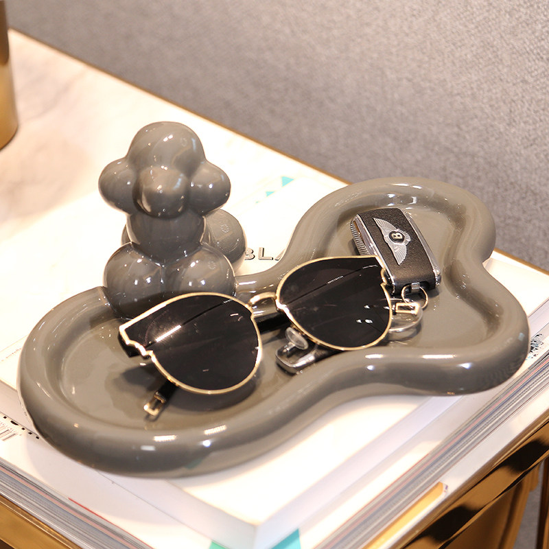 奶白气球狗托盘摆件玄关钥匙盘家用茶几梳妆台置Y物收纳盘装饰