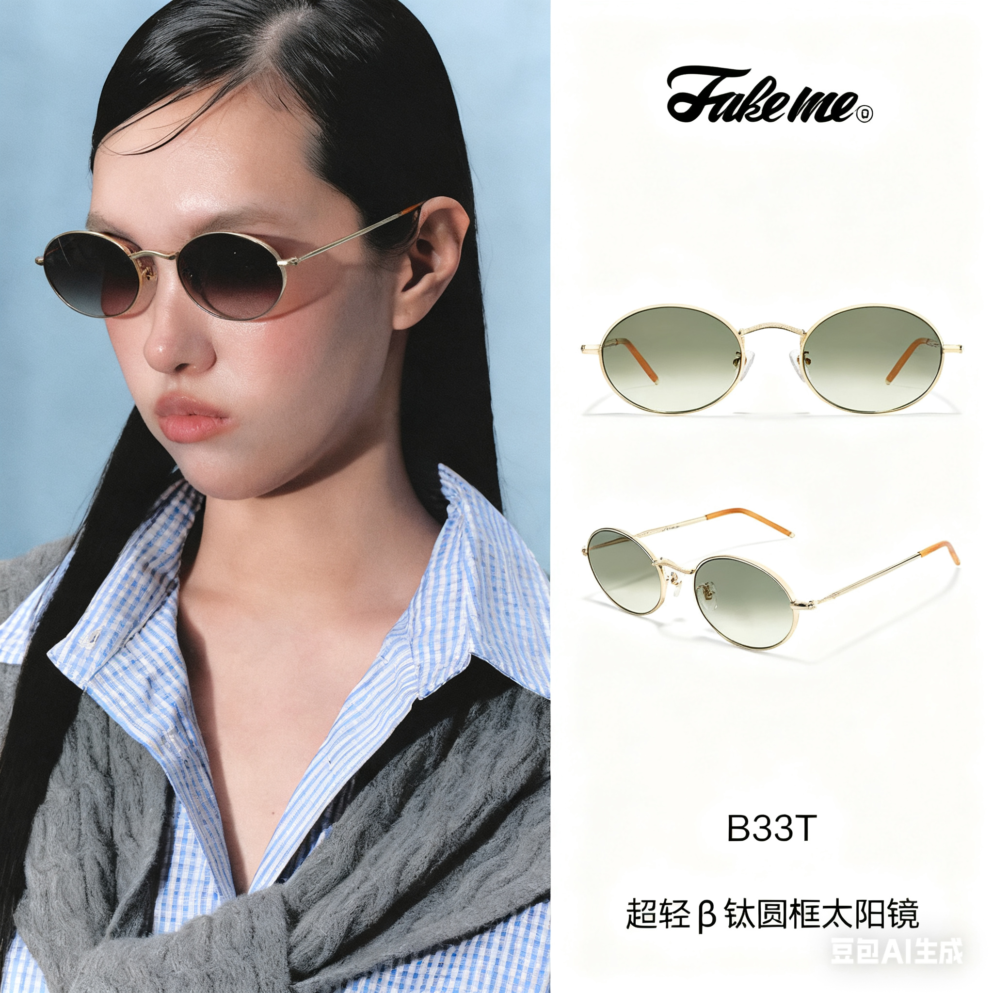 Fakeme 玫瑰的故事刘亦菲同款绿渐进β钛椭圆框墨镜太阳镜B33T