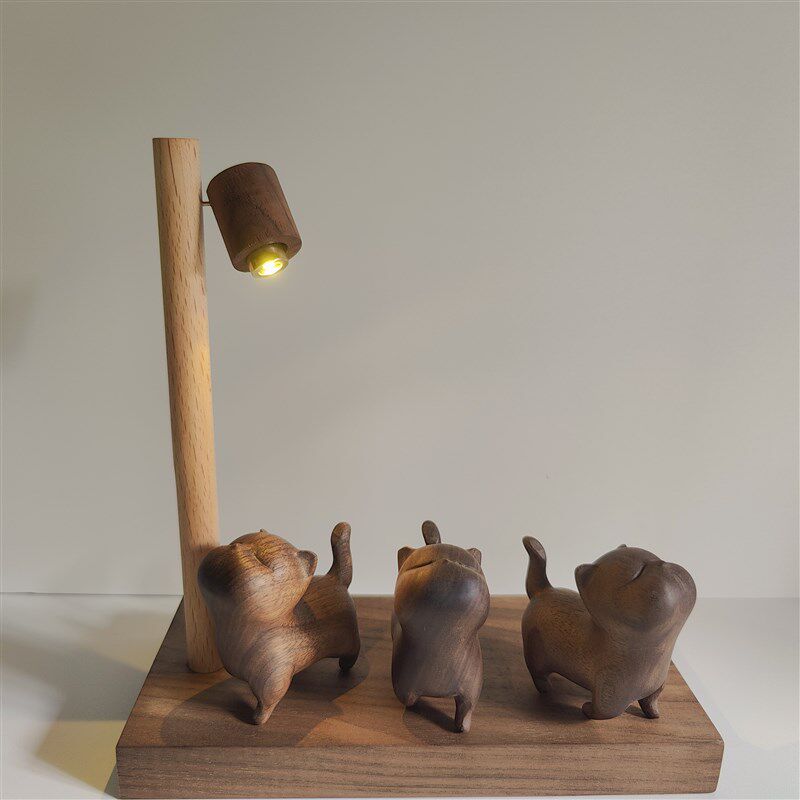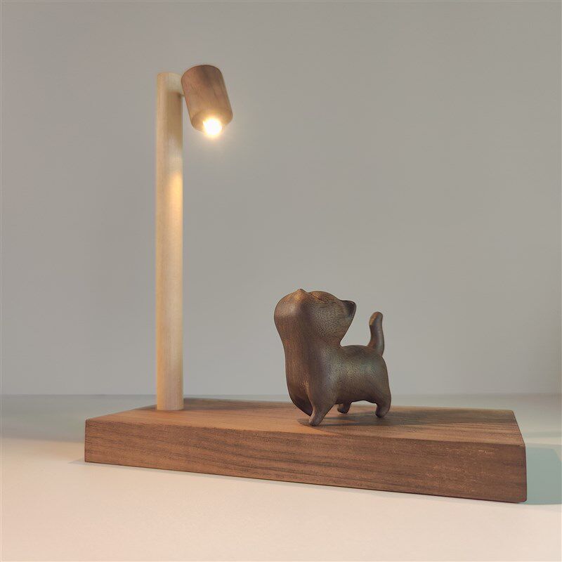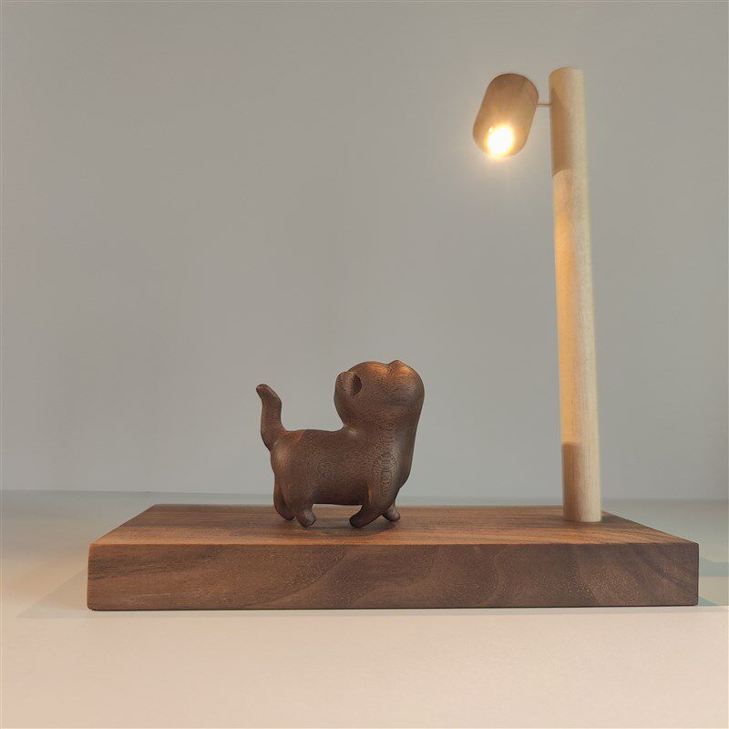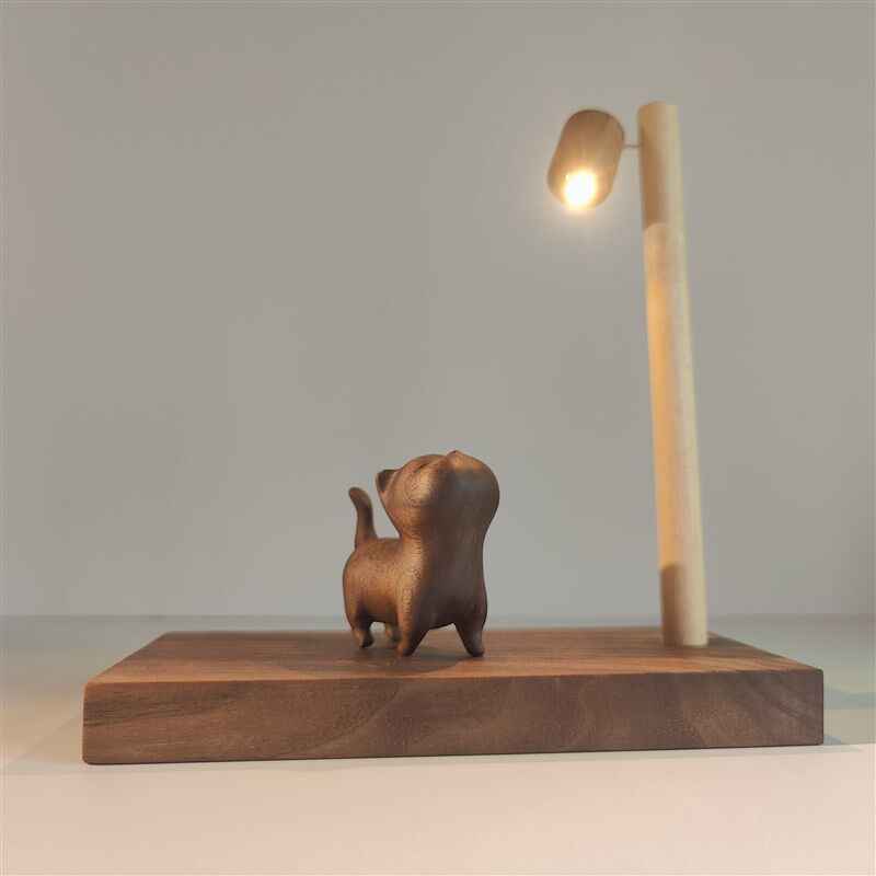 猫咪元素实木路灯傲娇木作工艺品礼E品桌面床头小夜灯礼物木质摆
