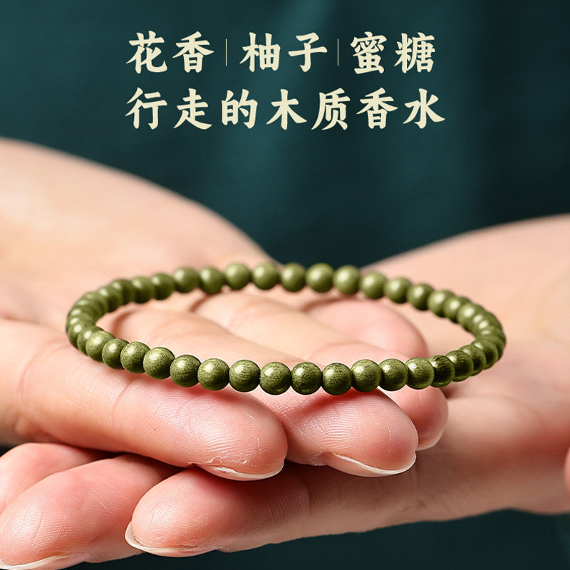 天然绿檀木手串4mm女款本命年绿色木质饰品情侣手链生日礼物实用