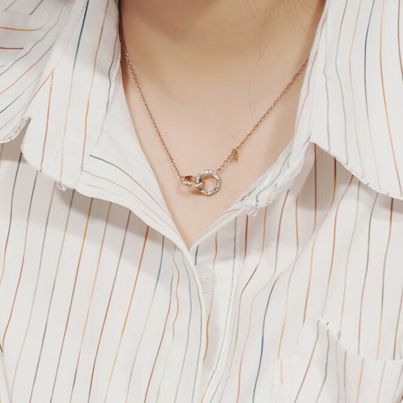 【自营】阿玛尼莫比乌斯环双环项链女玫瑰金高级感小众轻奢锁骨链