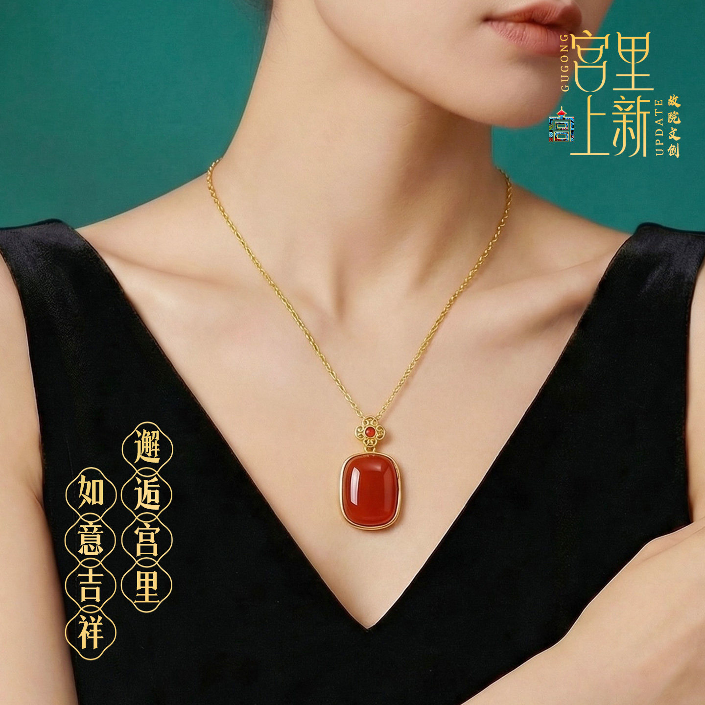 【母亲节礼物】宫里上新红玛瑙吊坠女天然红色无事牌项链生日礼物