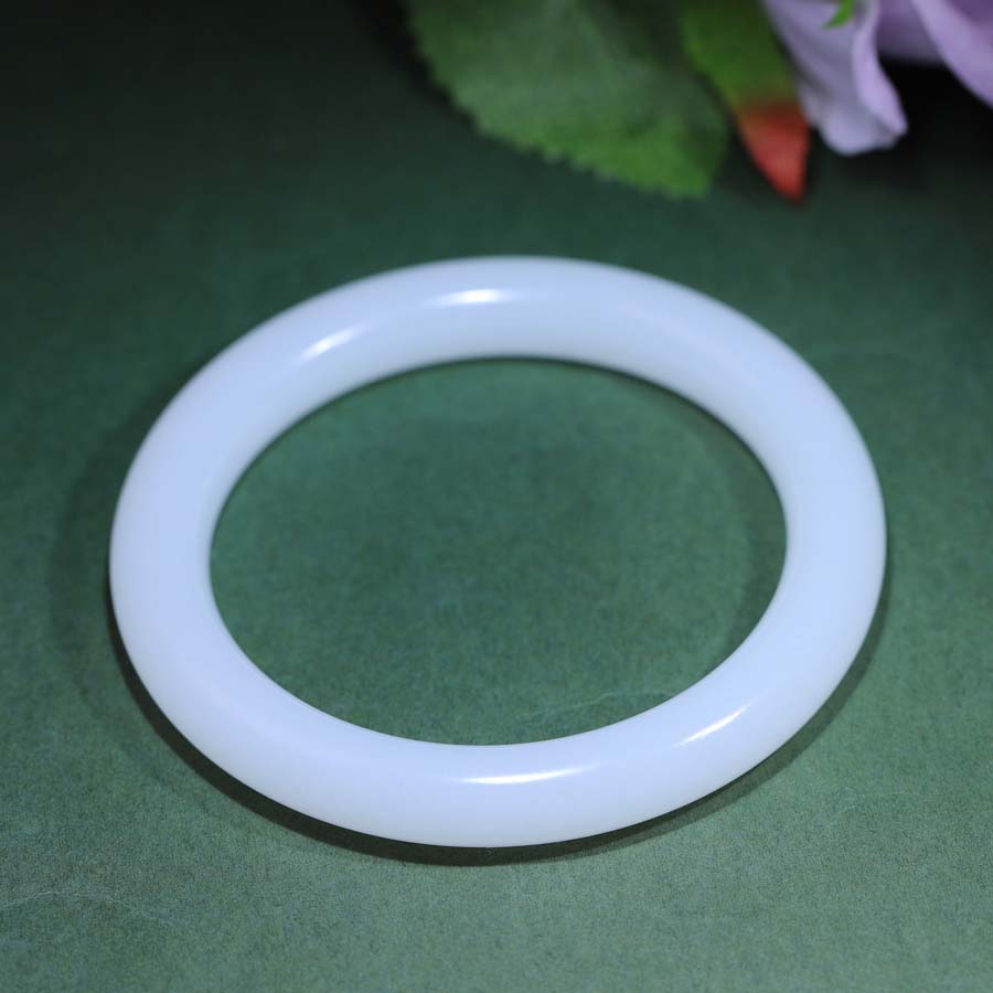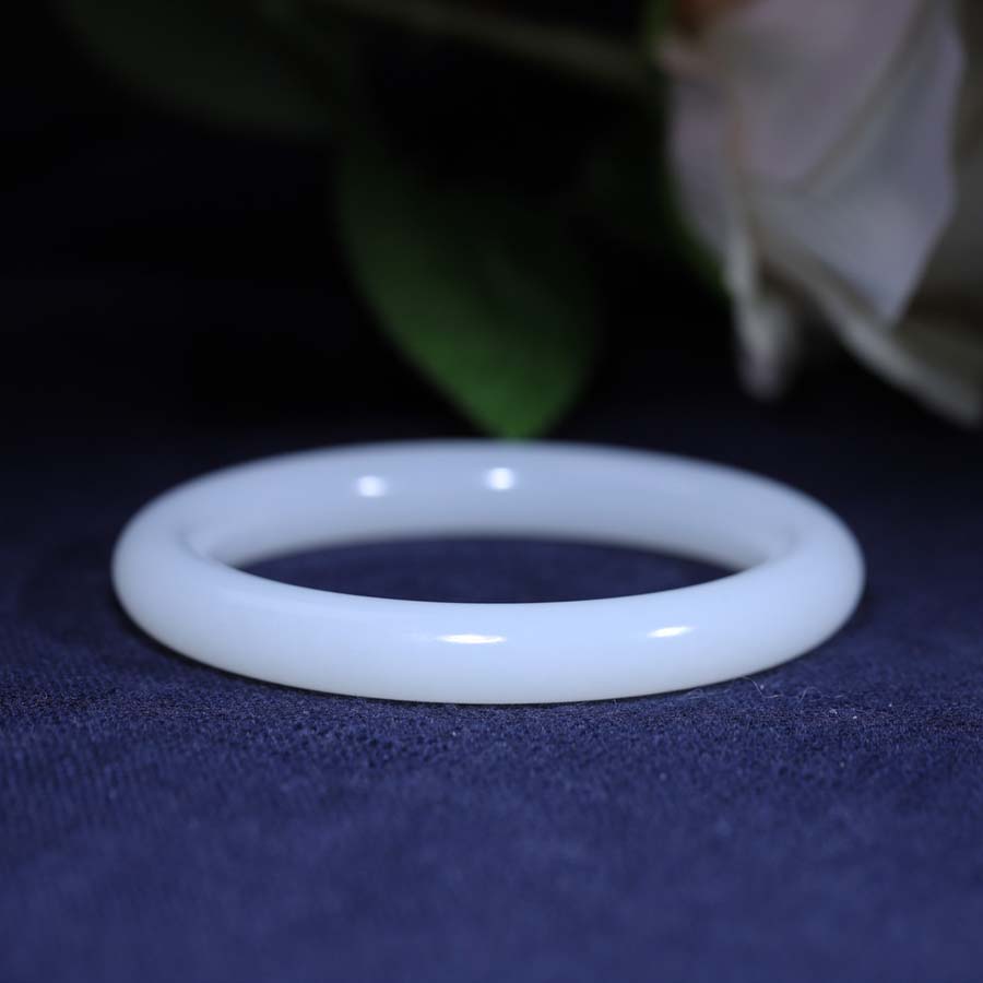 玉秀新疆和田玉58圈圆条手镯女款定制手饰苏工籽料羊脂白玉带证书