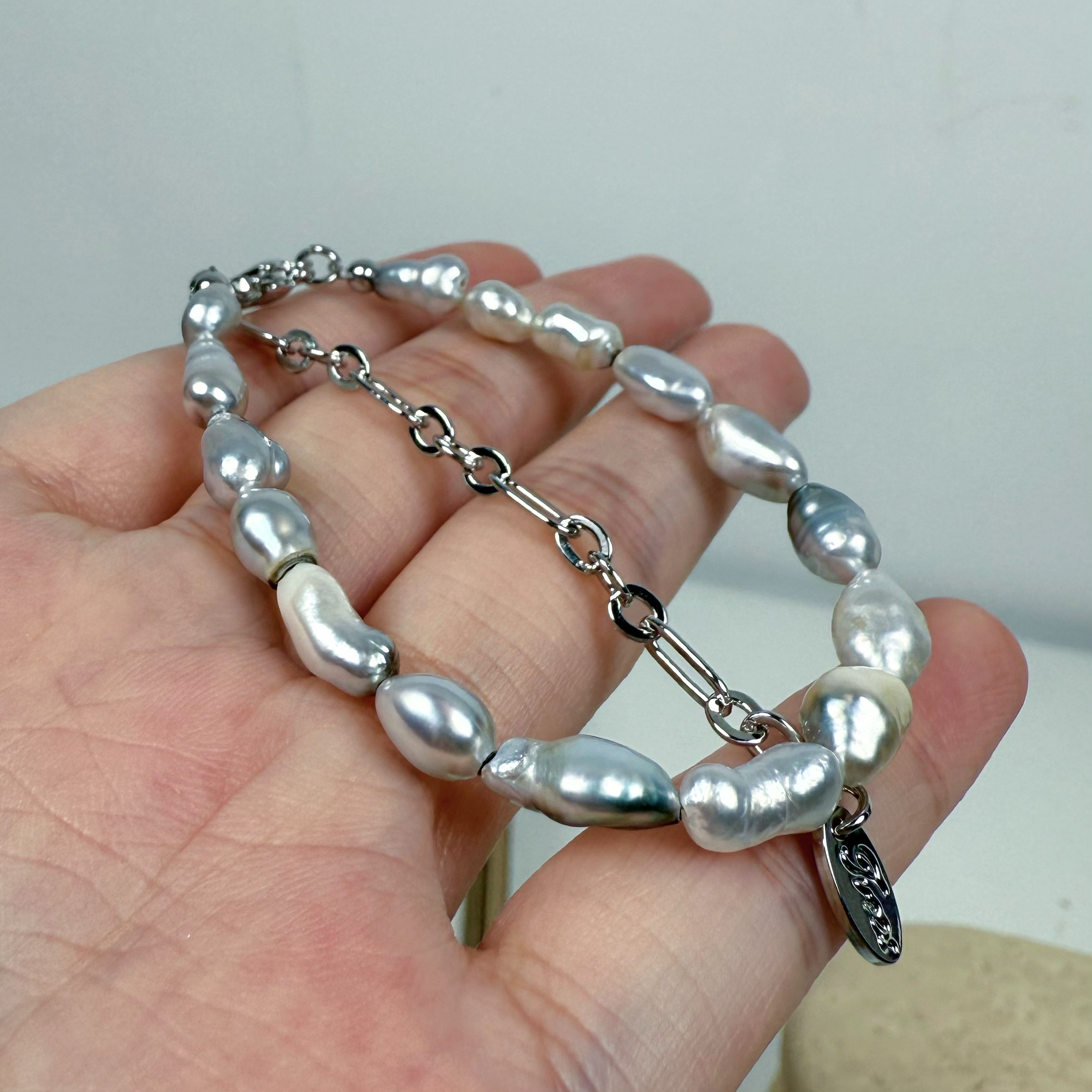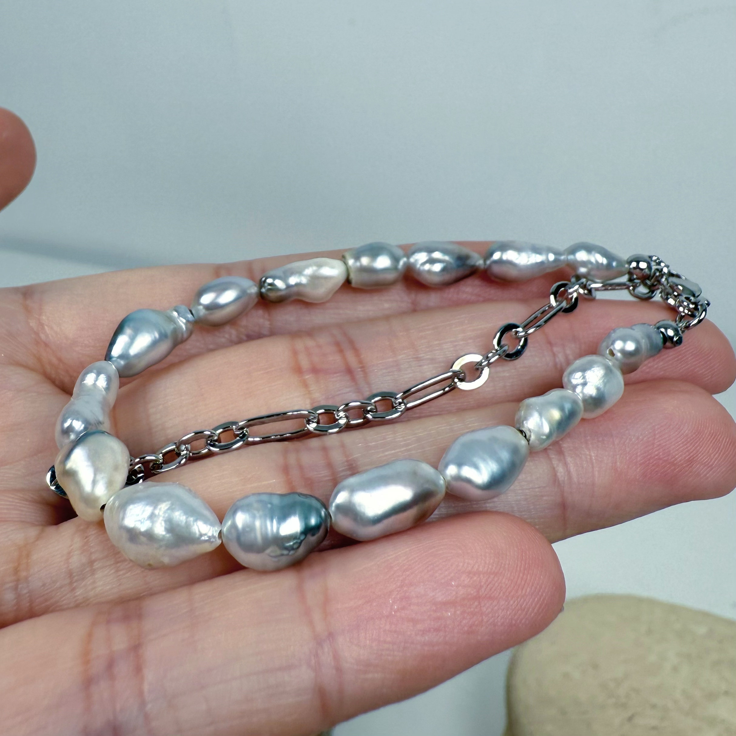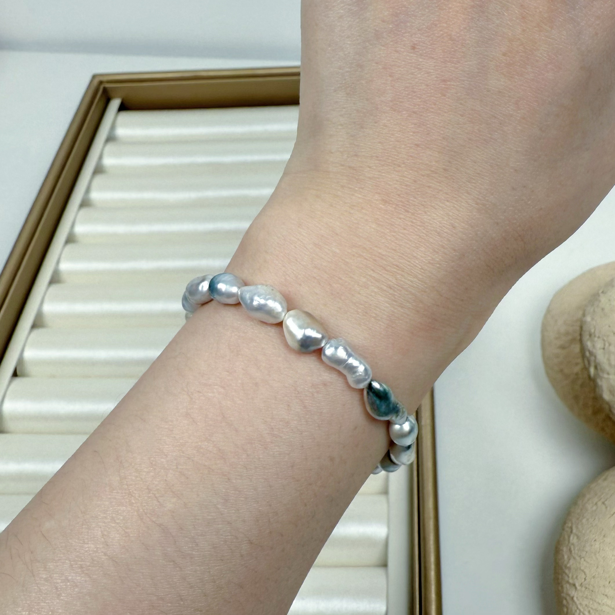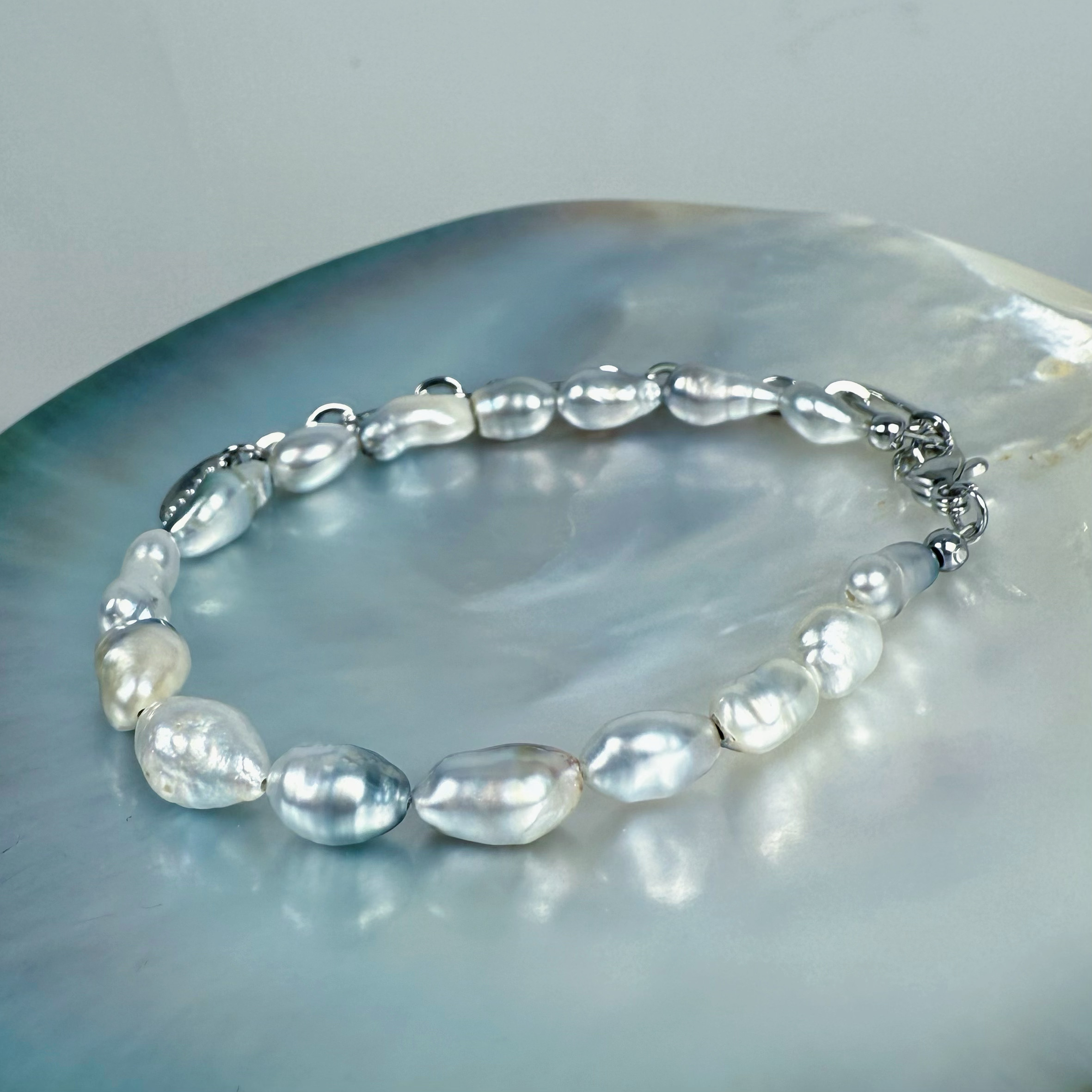 一物一拍极光澳白大溪地无核Keshi克旭天然海水珍珠手链延长链