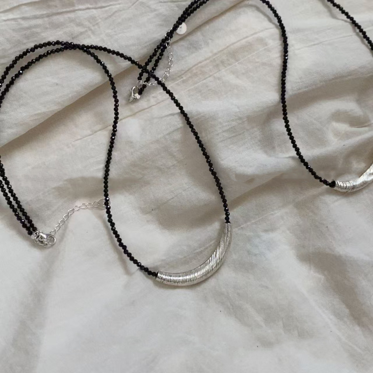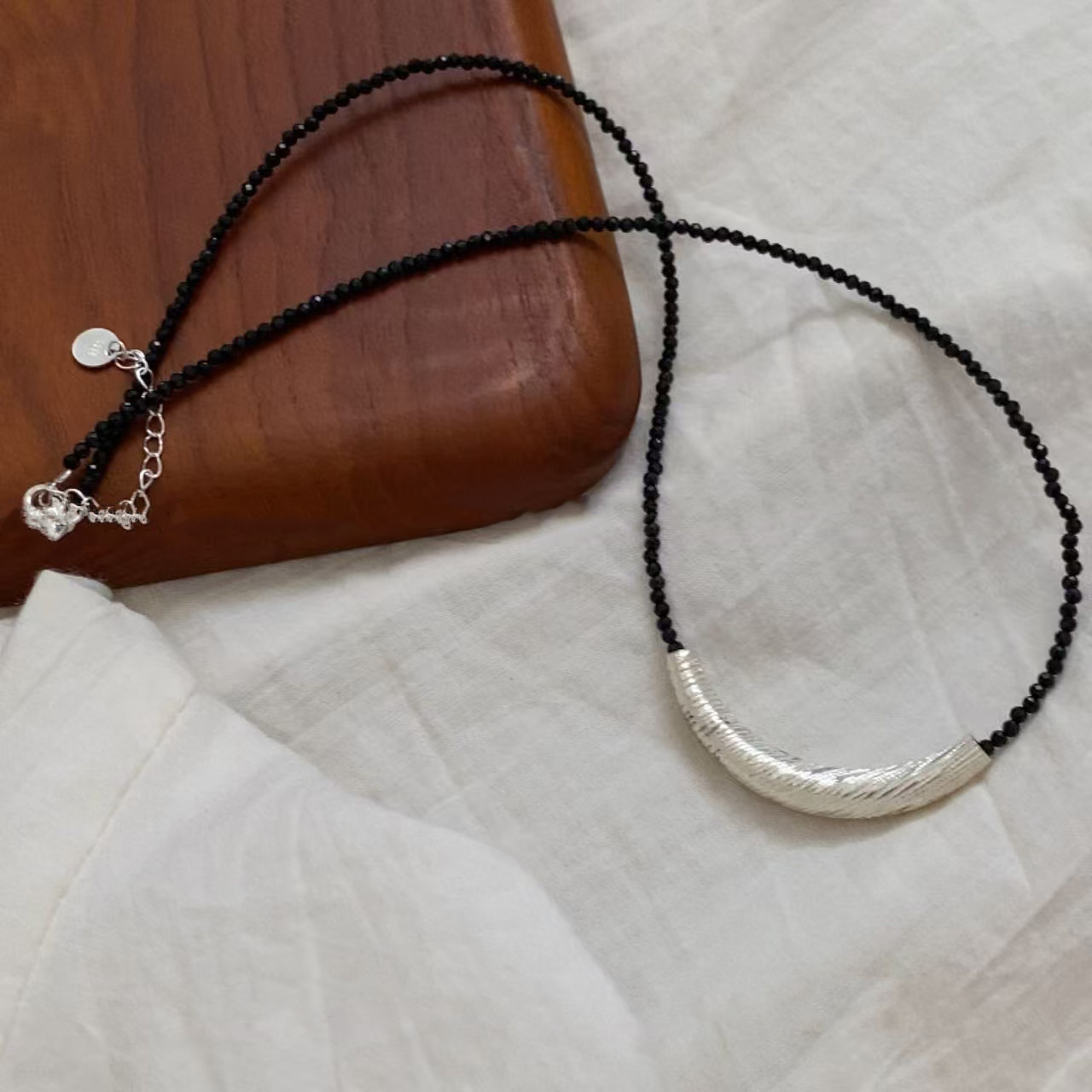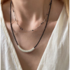 银色月牙弯黑色串珠项链女轻奢小众设计高级感秋冬毛衣链气质配饰