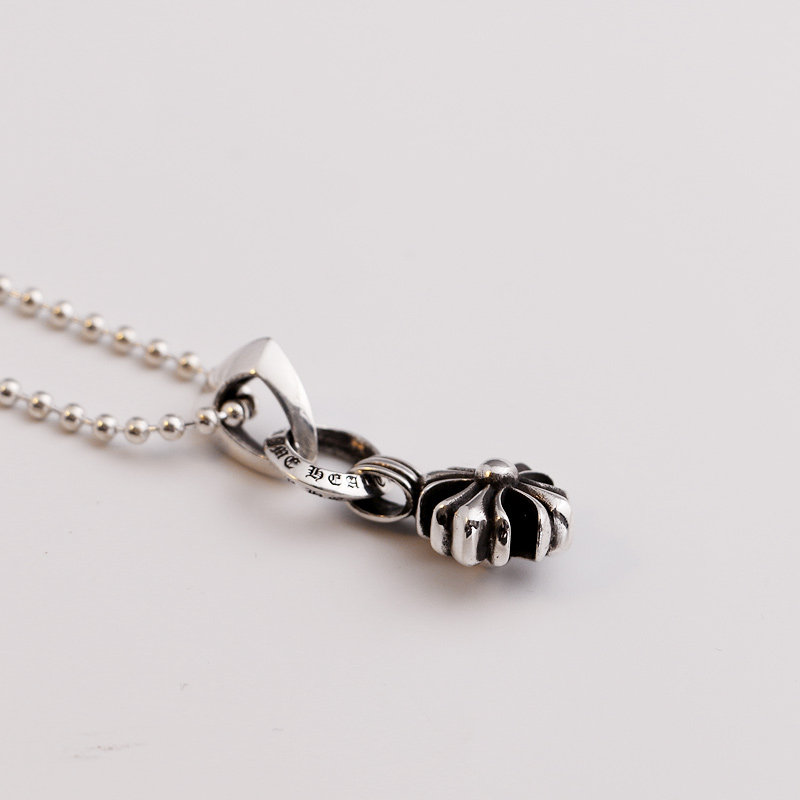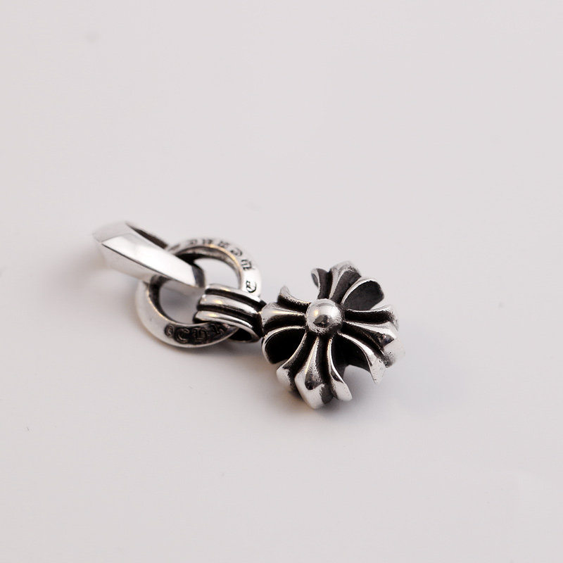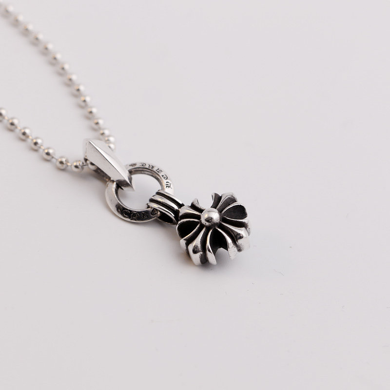 一休老银匠S925纯银十字花吊坠项链 毛衣链潮流朋克 摇滚风格银饰
