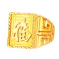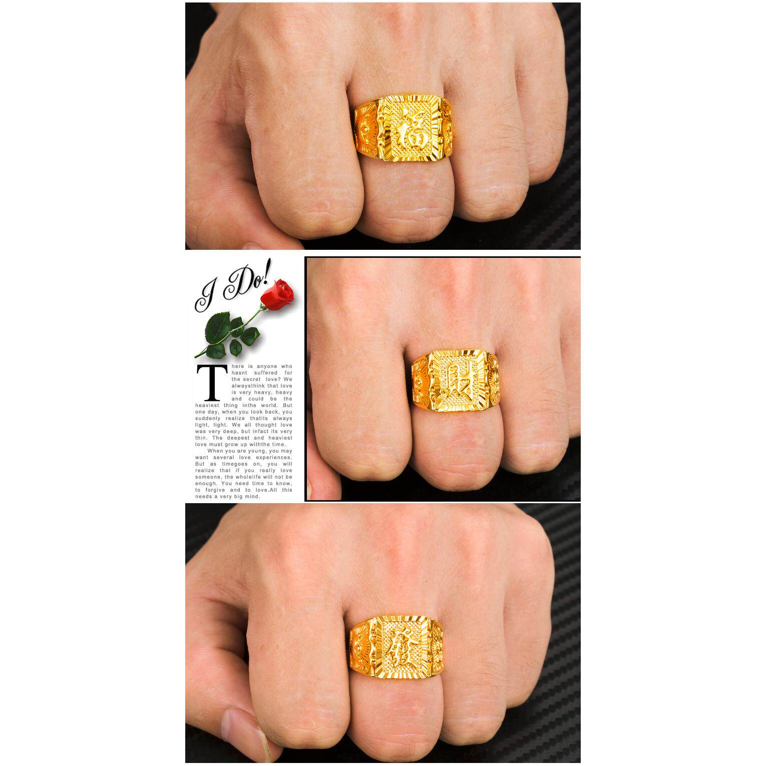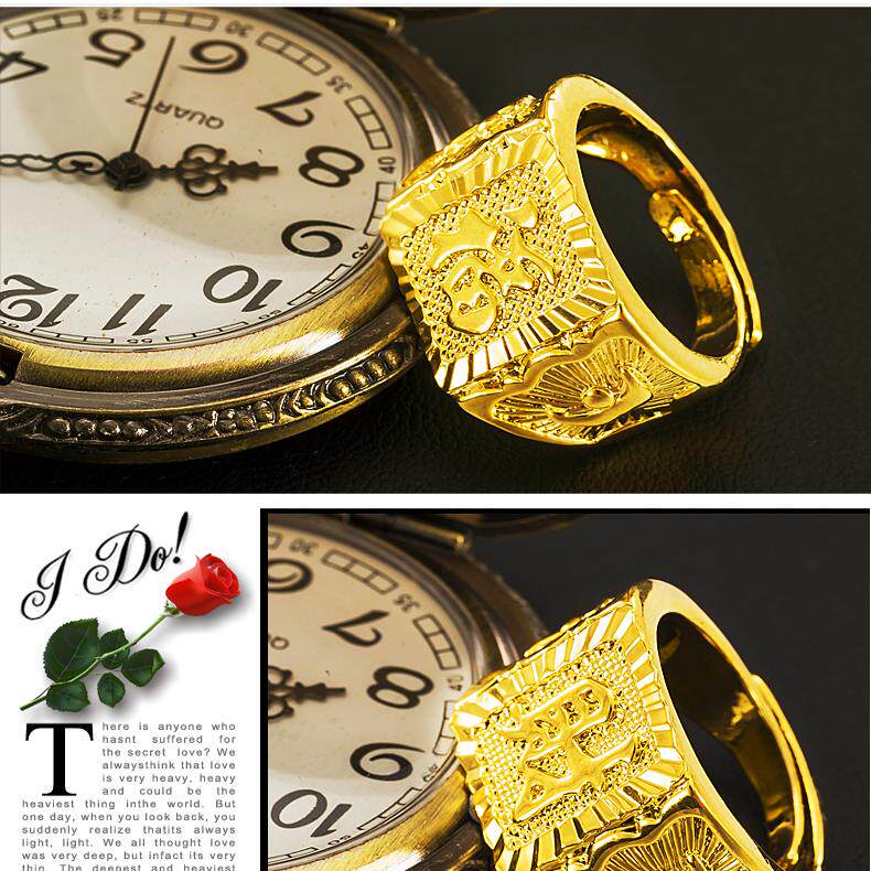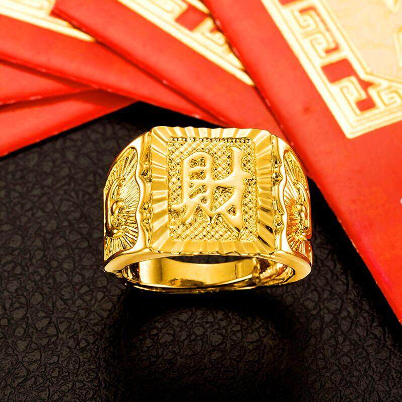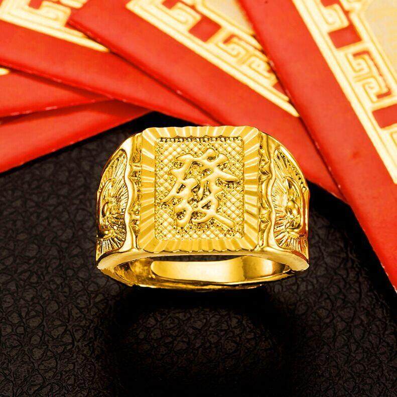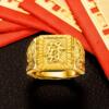 越南沙金戒指久不掉色男士霸气发财福四方型活口镀金加厚黄色指环