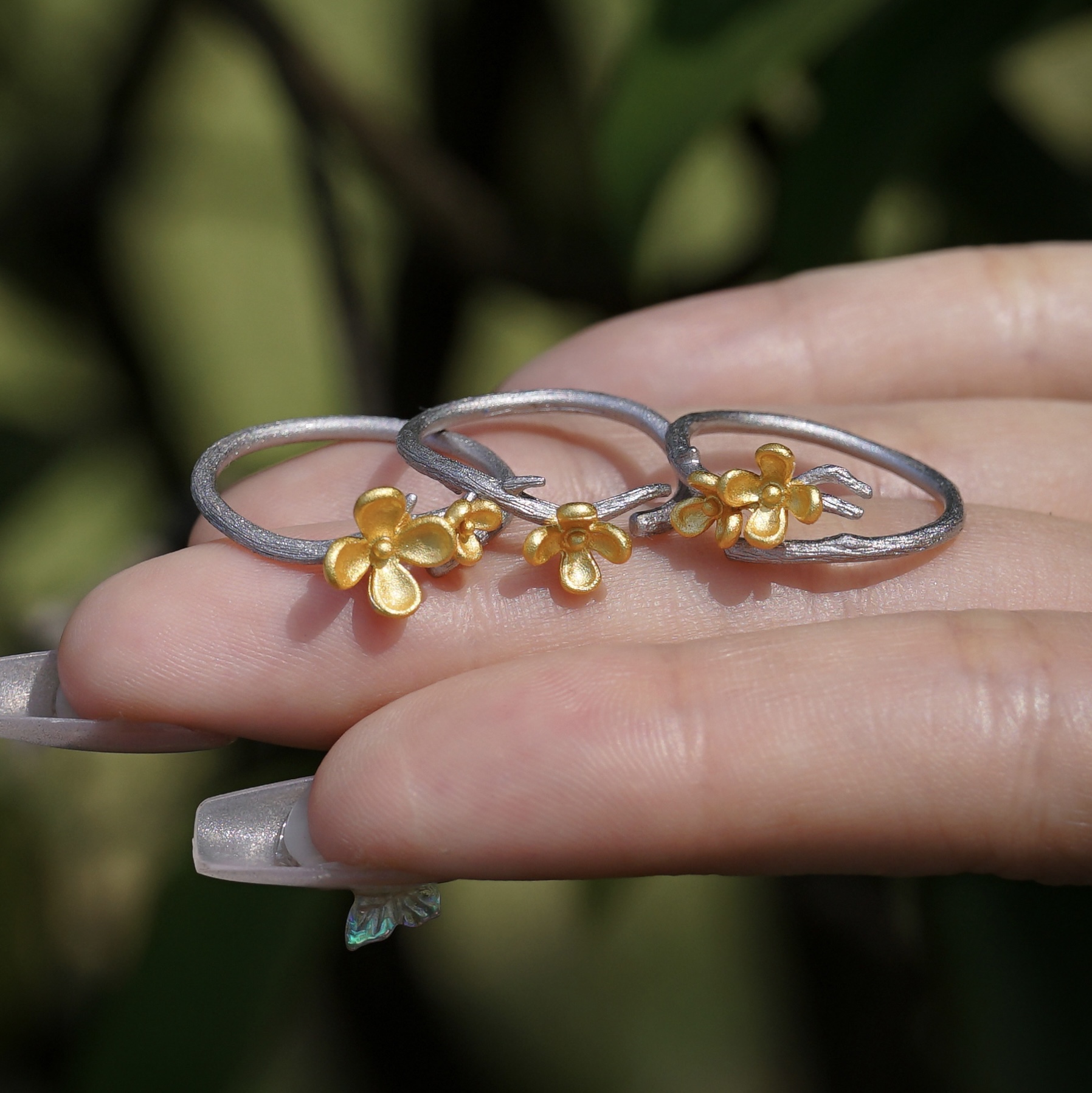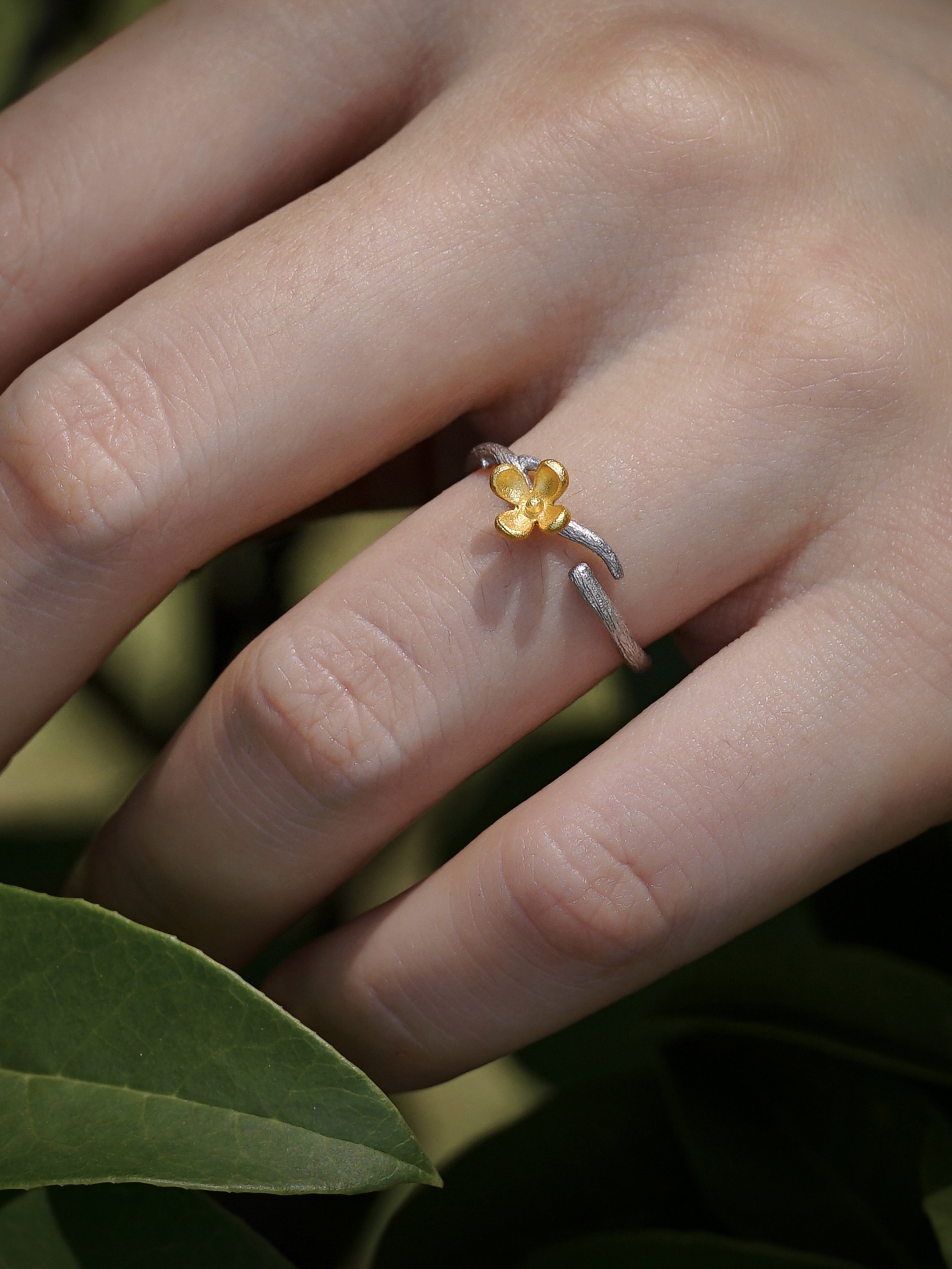 阿林的饰界桂花散落999足银镀金磨砂戒指