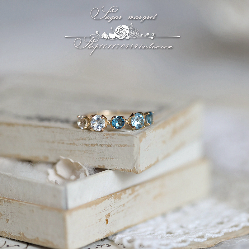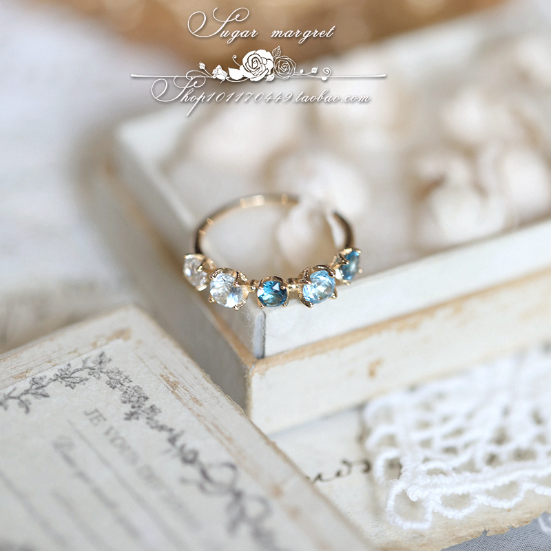 日光海域 夏日掠影2.0天然托帕石渐变蓝925纯银 戒指 美呆了
