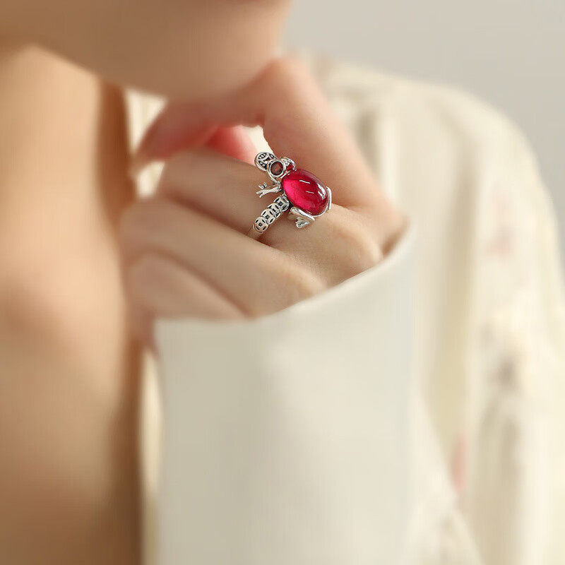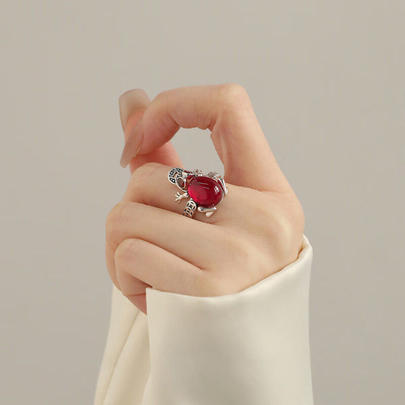 复古925银青蛙钱币戒指女新中式小众民族风轻奢百搭开口食指戒