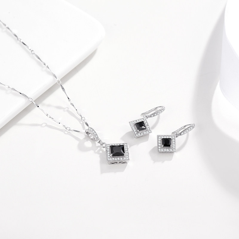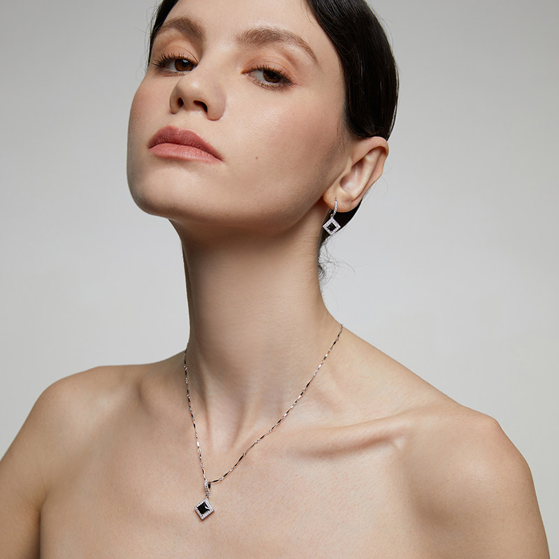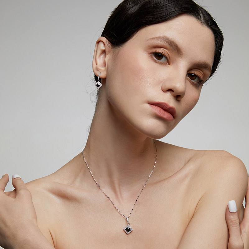 伊泰莲娜芳馨s925银项链几何独特锁骨链新款黑色吊坠个性设计