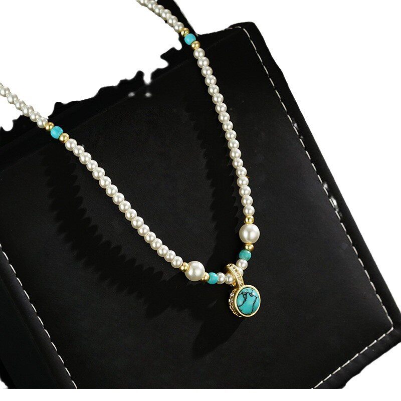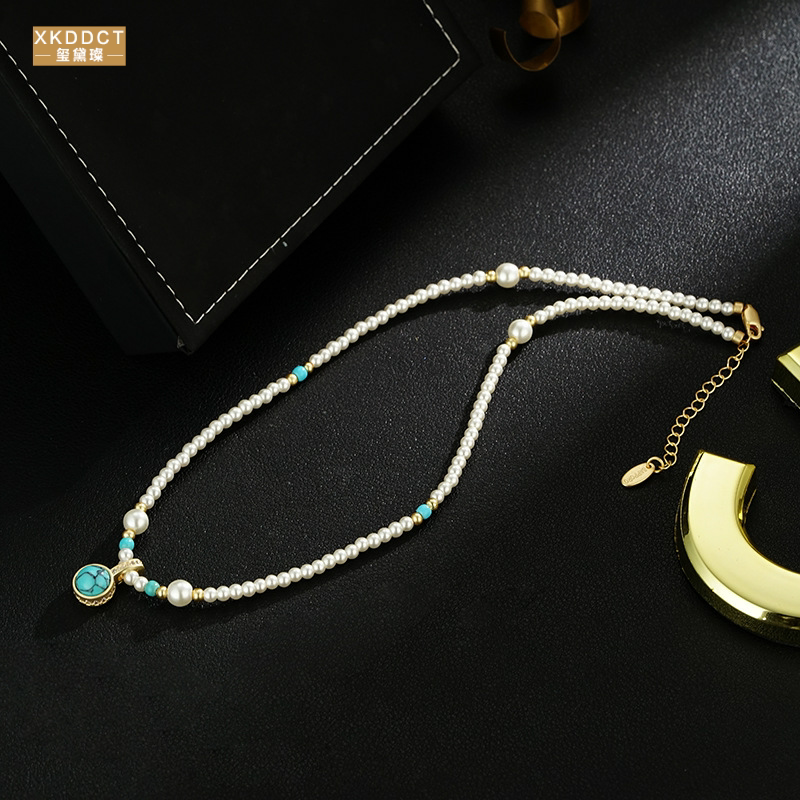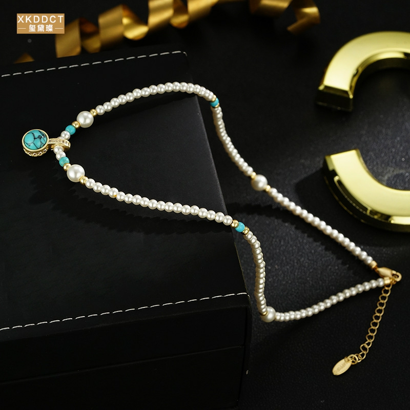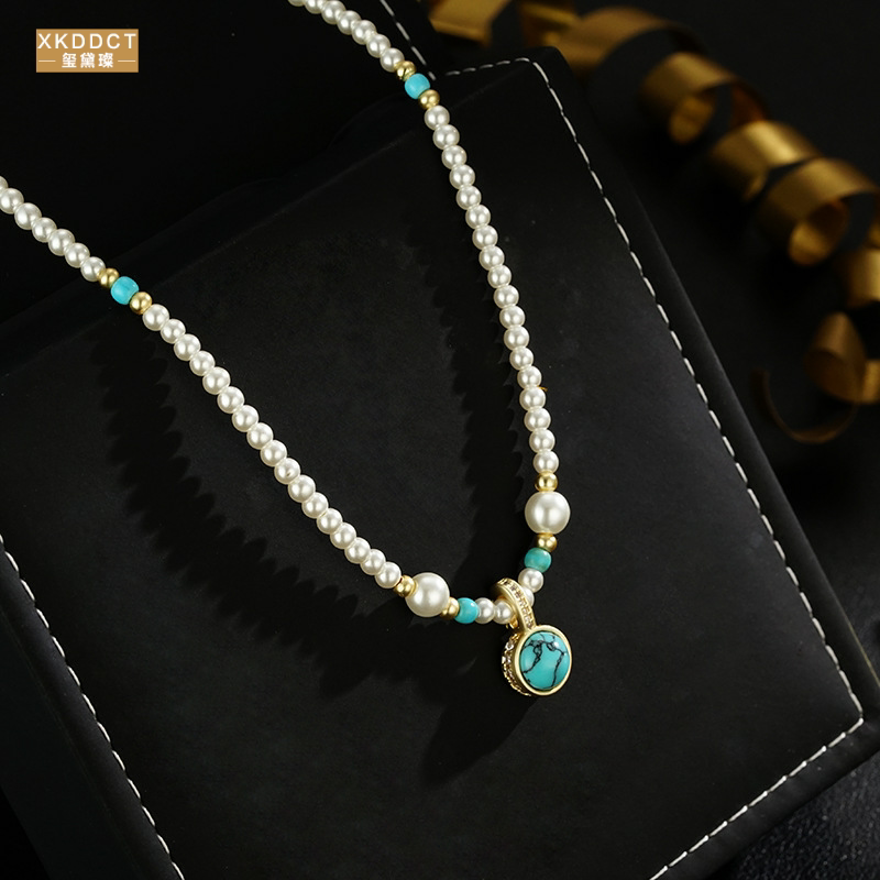 XKDDCT石吊坠珍珠项链女秋冬轻奢高级感小众骨链毛衣链405全新Uq
