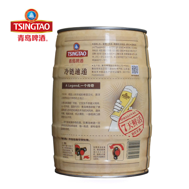 【青岛原浆】青岛啤酒原浆5L桶一厂五升原浆精酿扎啤鲜啤7天精酿