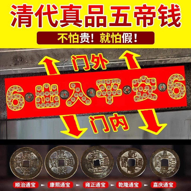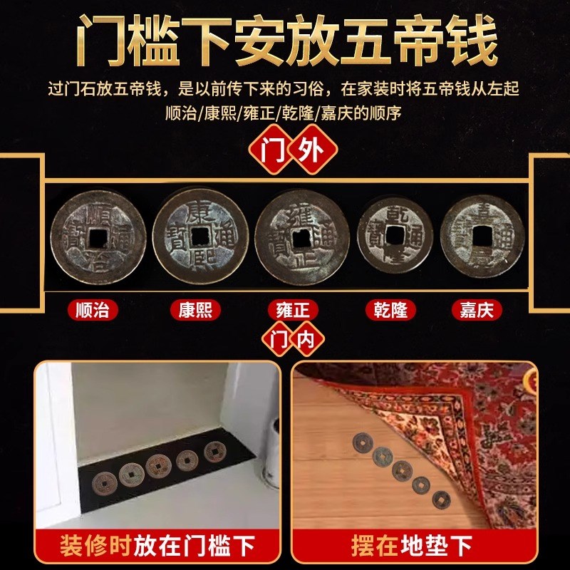 新房装修压门槛五帝钱真品入户门过门石下压的出入平安铜钱古币