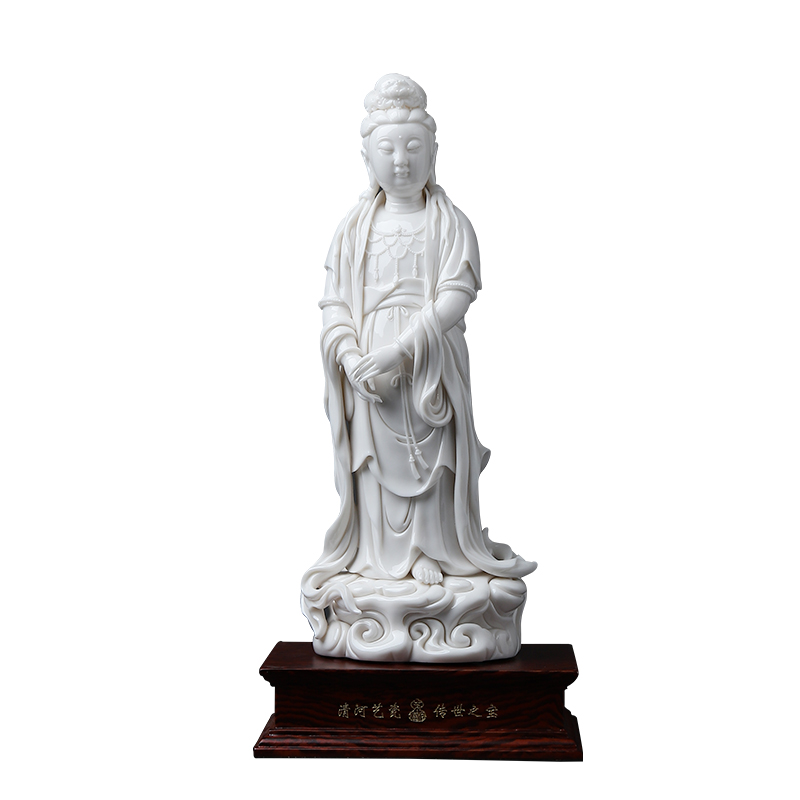 戴玉堂陶瓷《立云飘带观音》佛像省级大师苏友德收藏艺术客厅摆件