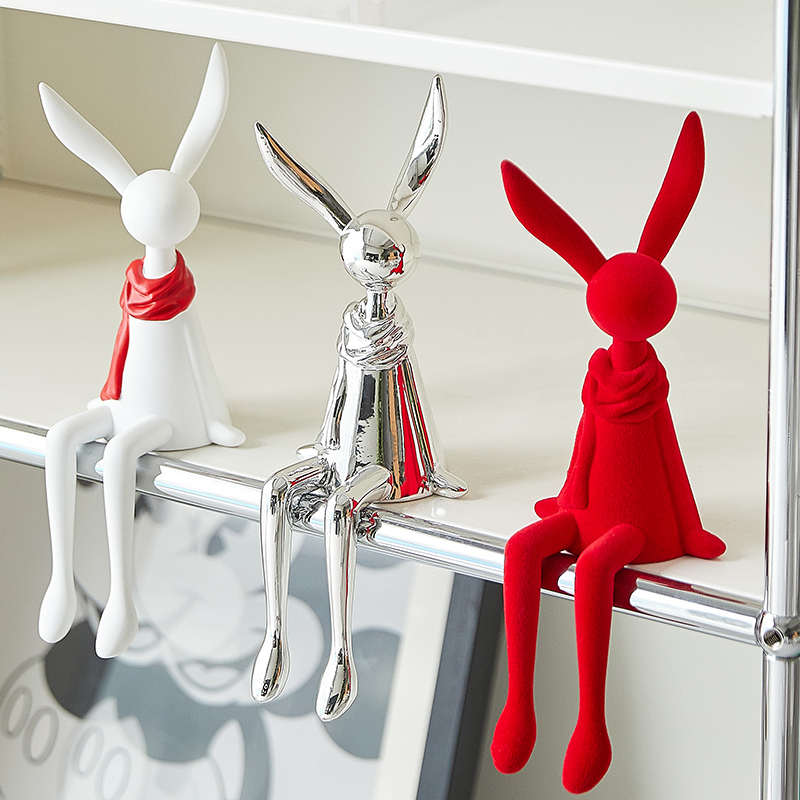 简约创意萌兔摆件家居客厅桌面电视柜玄关长耳吊脚坐姿兔子装饰品