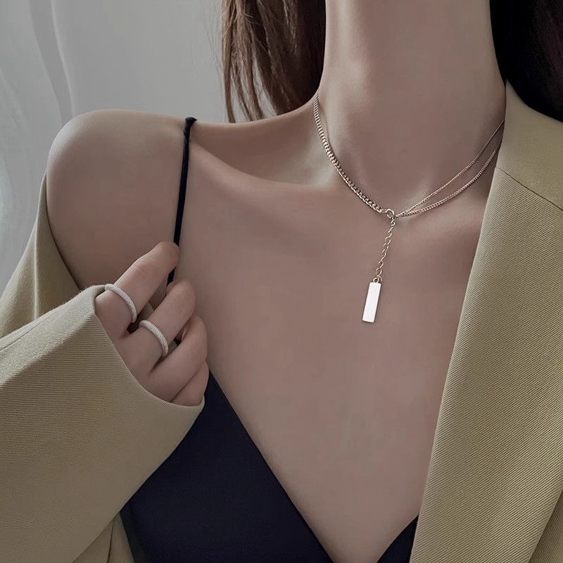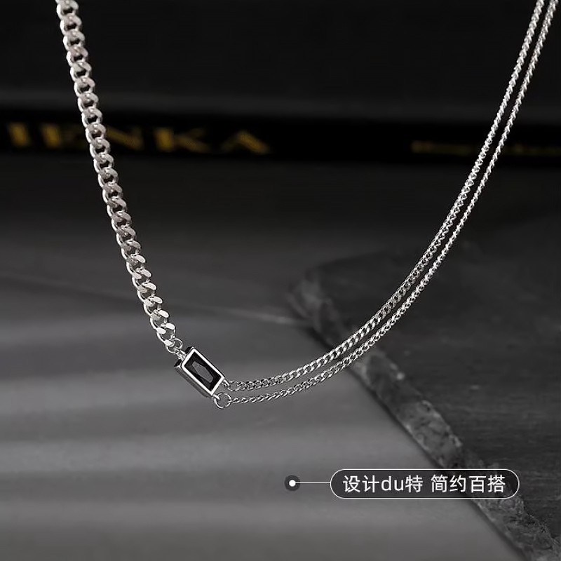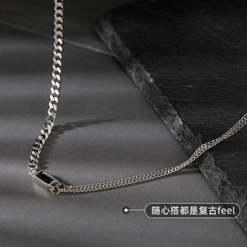 925纯银黑色方牌项链新款原创拼接女款锁骨链颈链生日送女友礼物