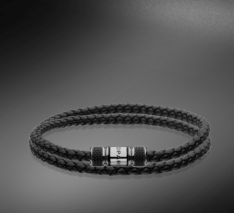Chopard萧邦情侣小牛皮黑色皮革双圈手绳情侣送礼圣诞礼物送男友