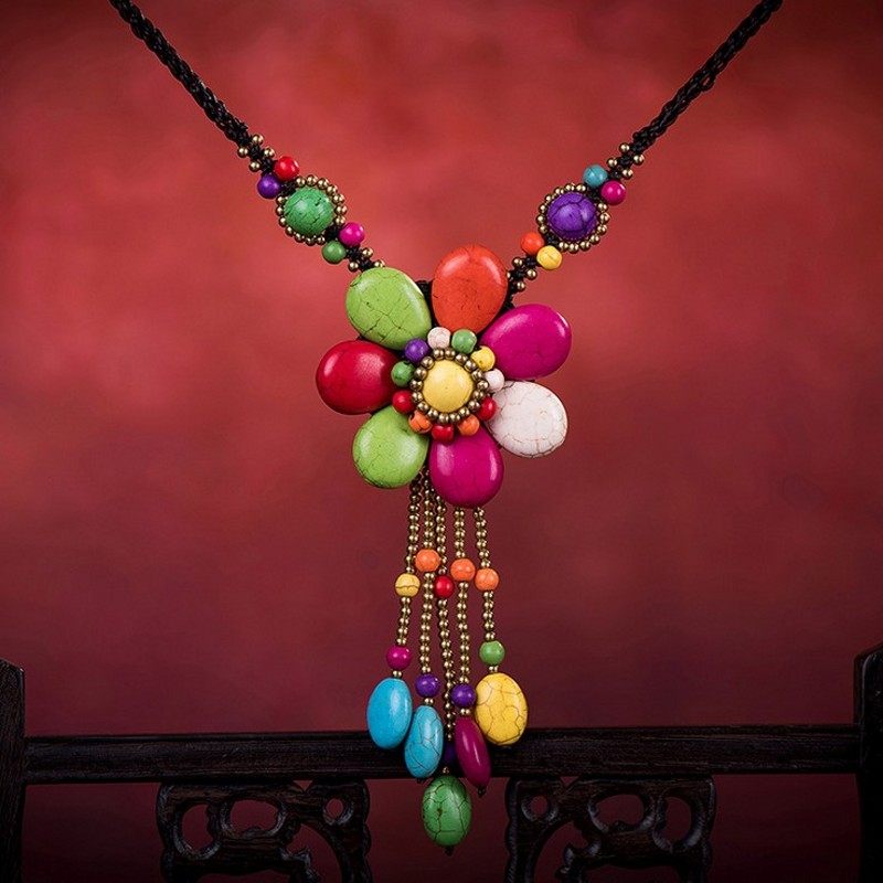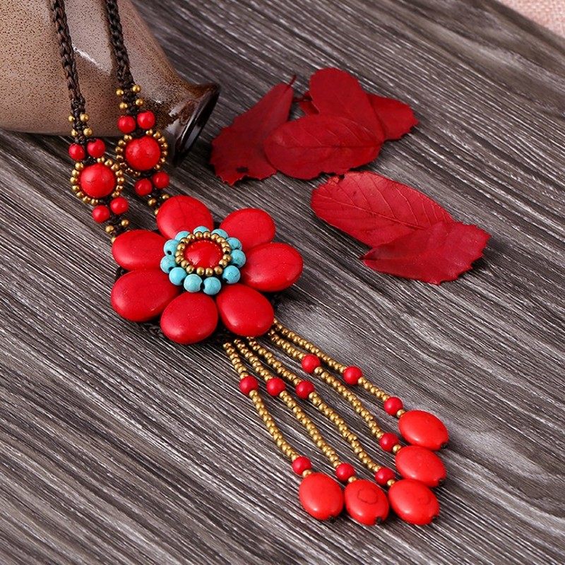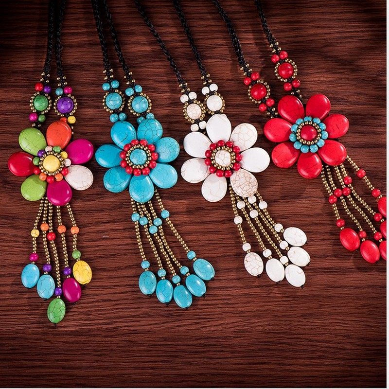 民族风毛衣链长款挂饰仿松石吊坠衣服配饰女挂件复古百搭饰品秋冬