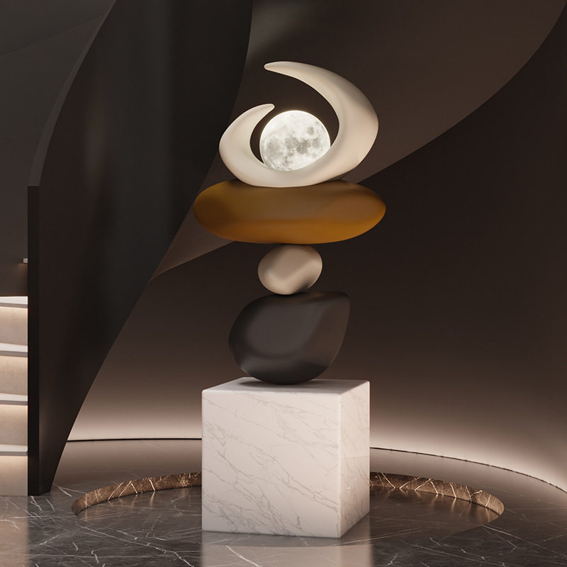 新中式时来运转假山石头雕塑售楼处摆件酒店别墅会所大堂落地夜灯