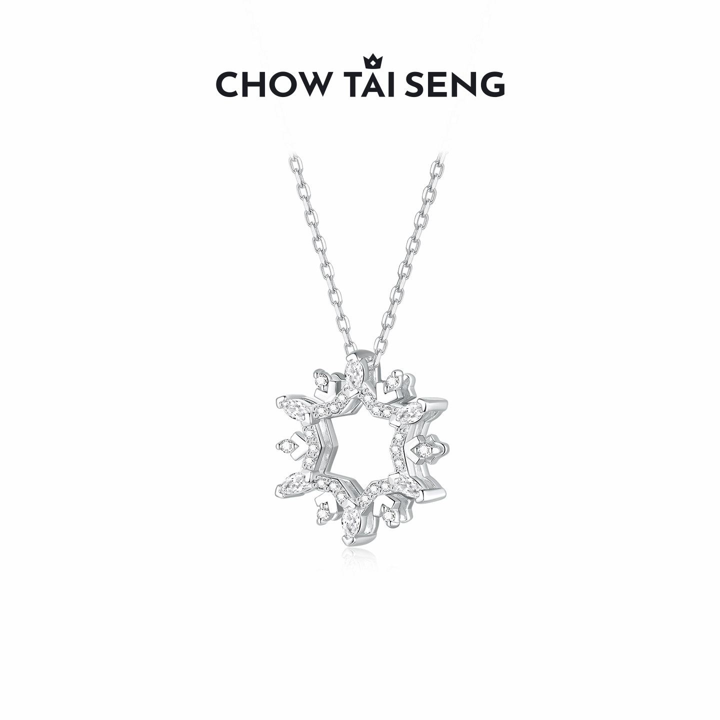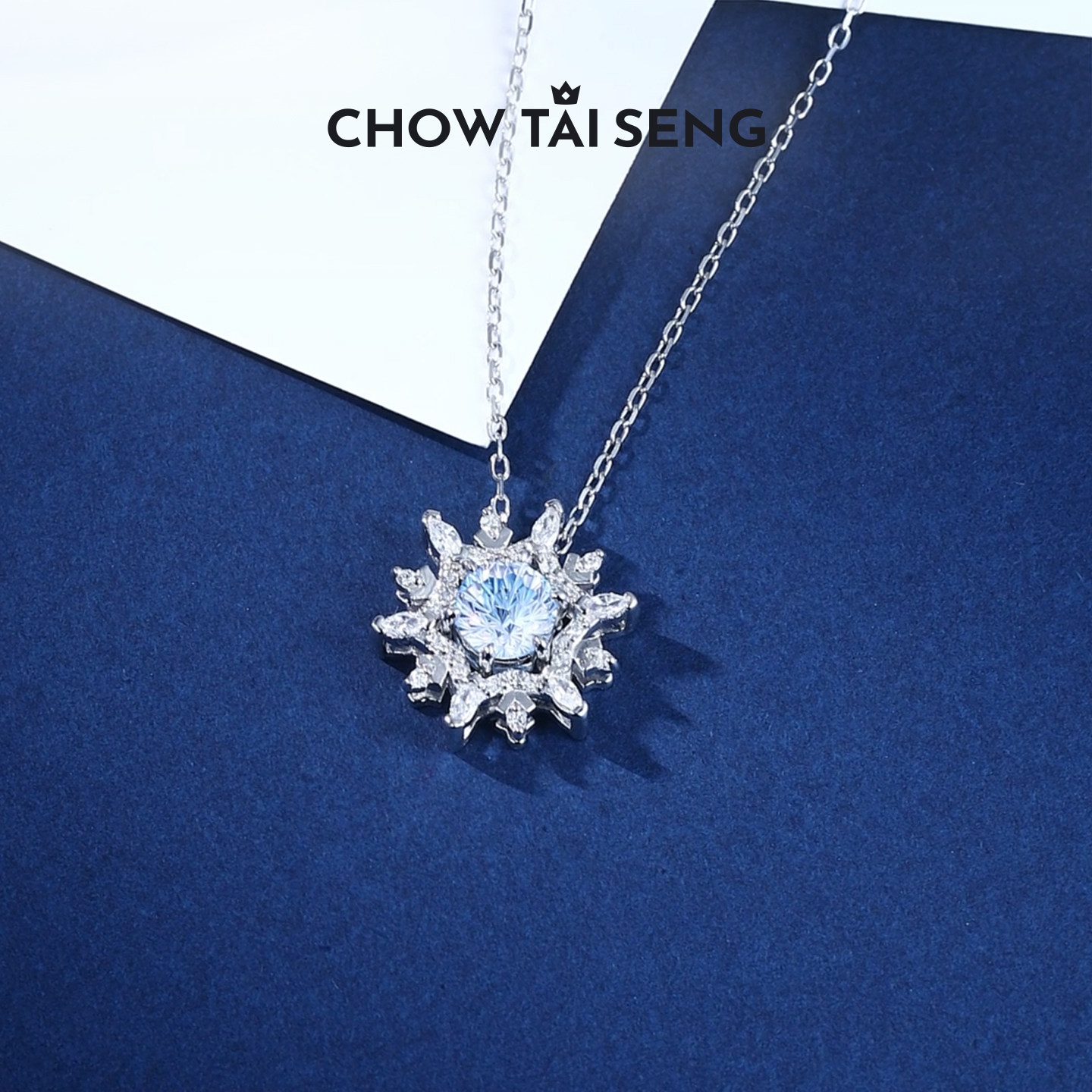 周大生炫彩雪花项链女S925纯银雪花锁骨套链吊坠送女朋友生日礼物