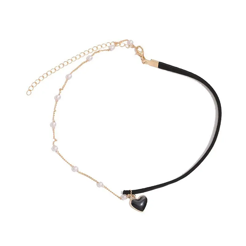 韩版项圈 珍 珠颈链红色锁骨链颈带爱心吊坠项链女