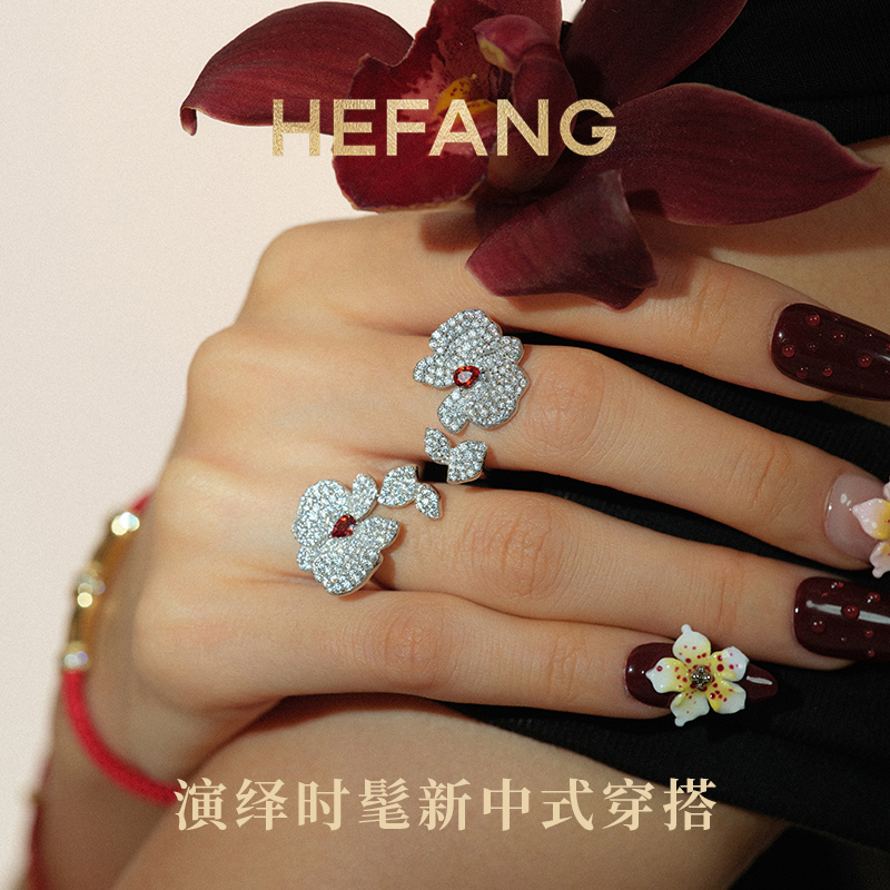 HEFANG何方珠宝蝴蝶兰戒指轻奢优雅百搭饰品国风生日礼物