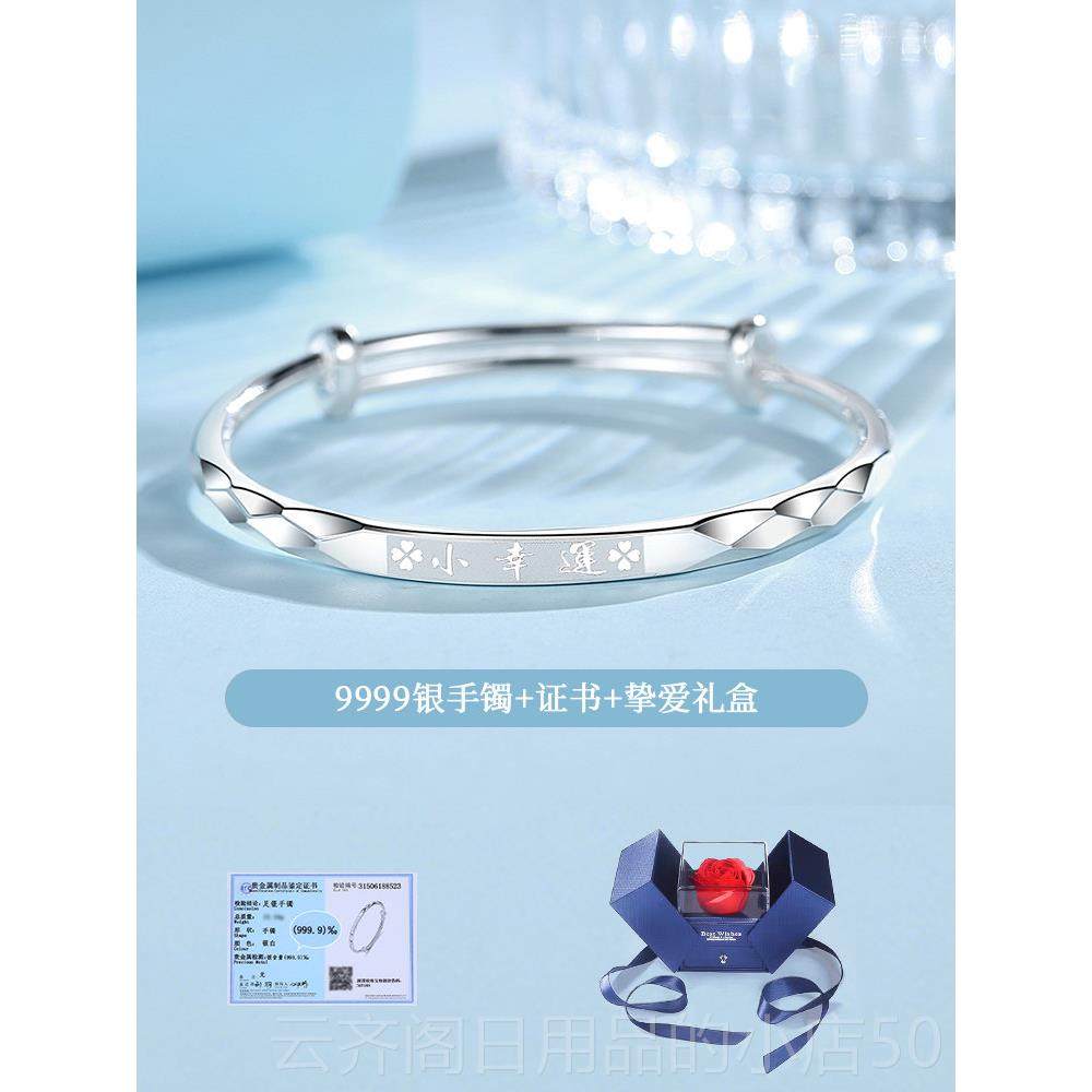 正品幸运999足年银手镯女士银轻款链2025情纯人节礼物送女友简9约