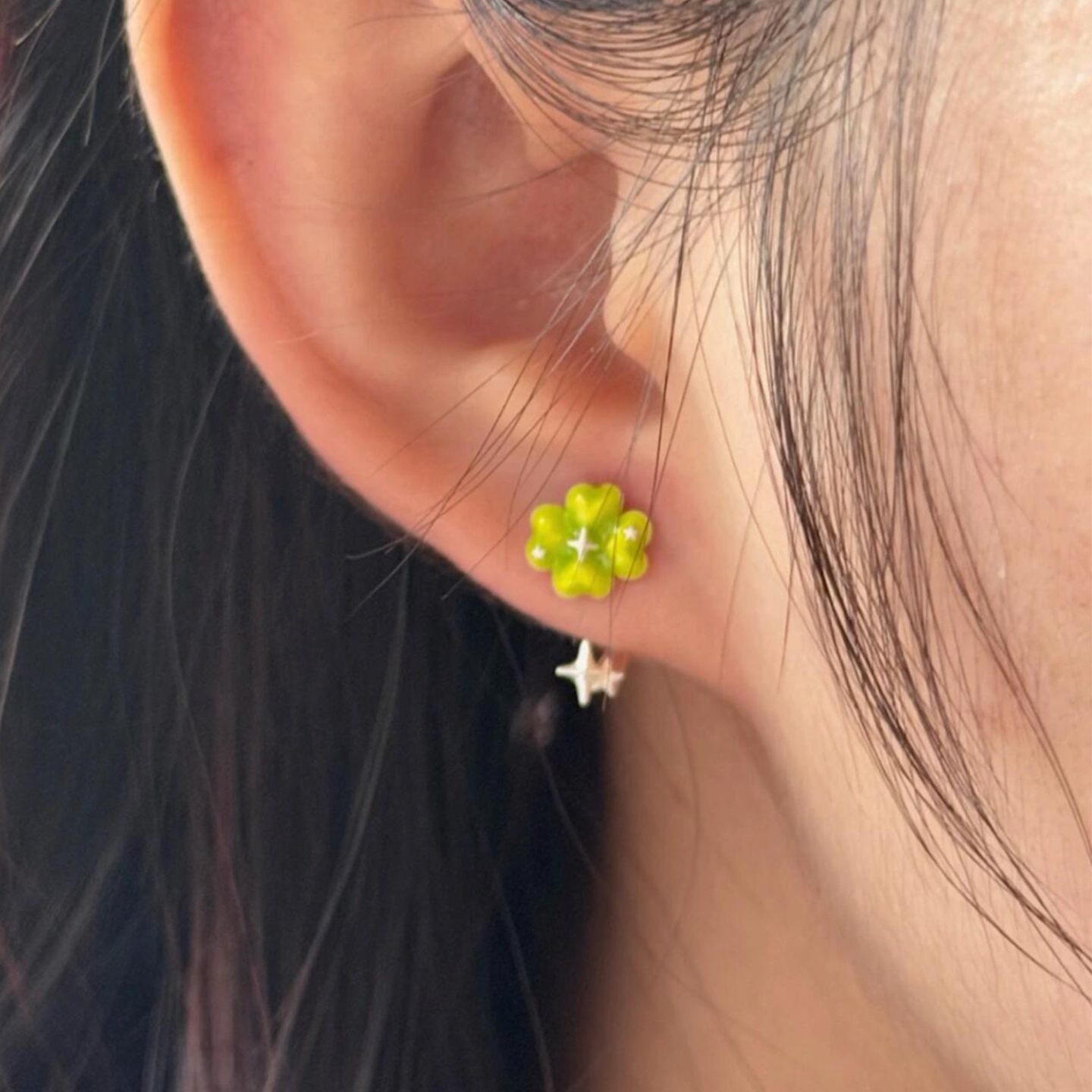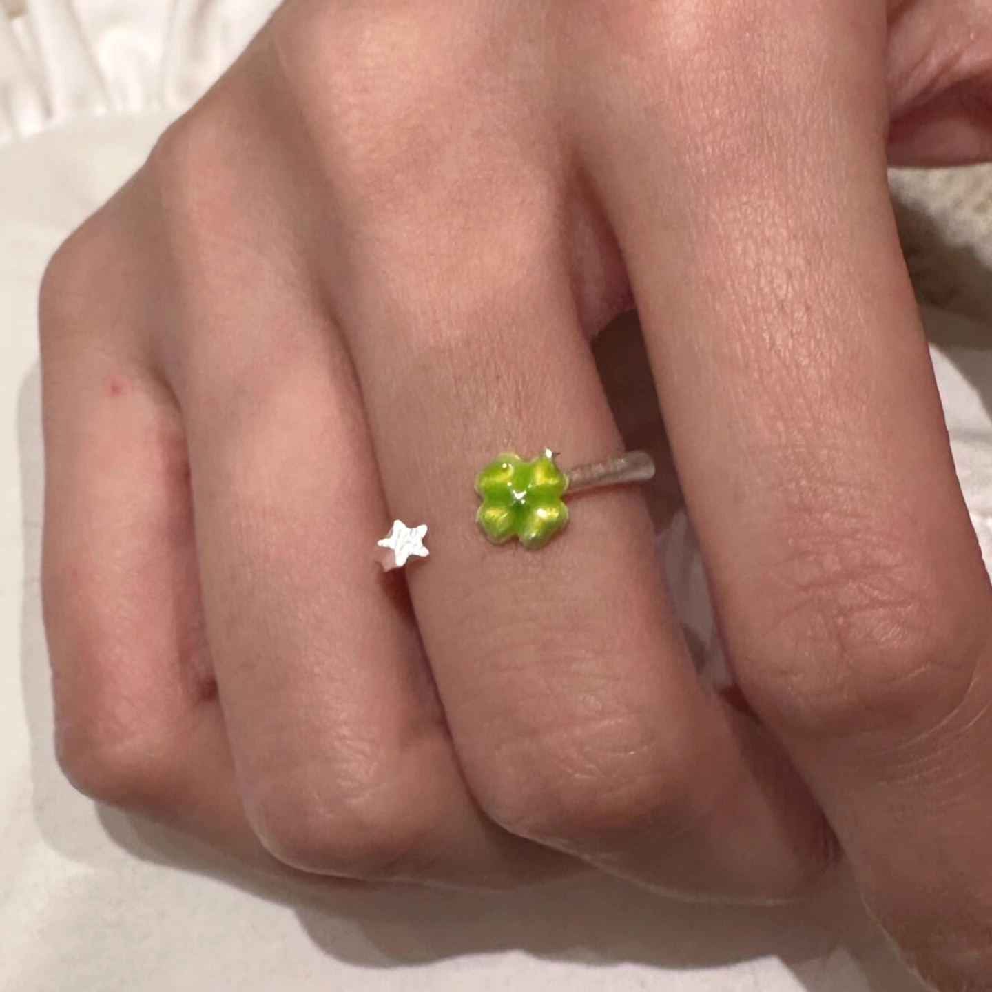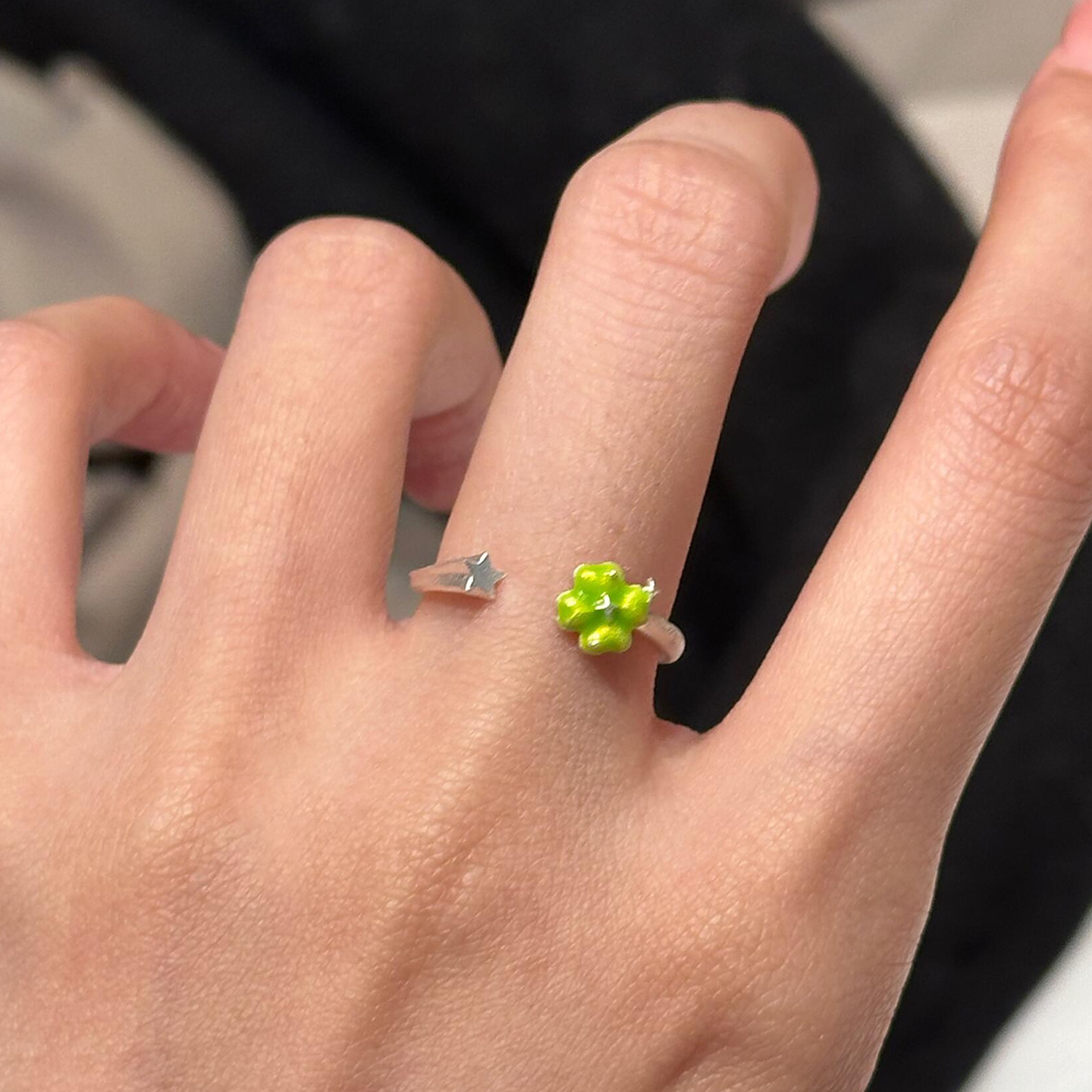 韩系小清新绿色四叶草星星戒指女小众设计轻奢高级感简约百搭指环