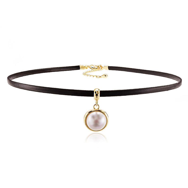 饰品脖颈链女气质人造珍珠黑色项圈网红颈带短款锁骨项链锁骨链