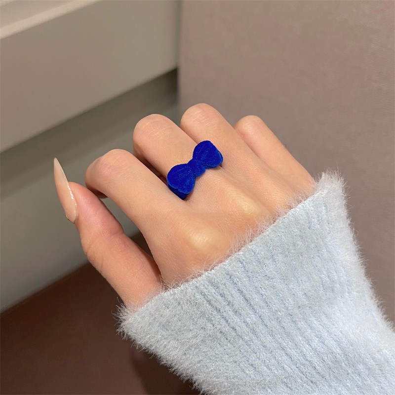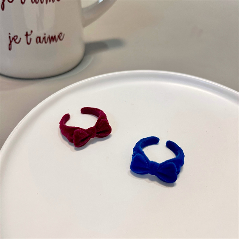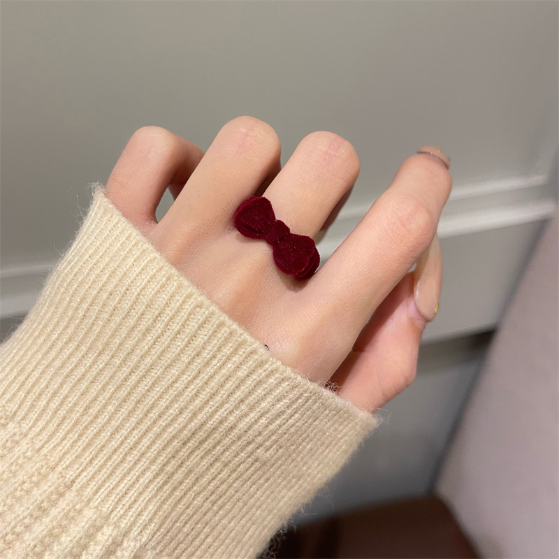 复古植绒红色蝴蝶结戒指女秋冬甜美可爱小众设计食指戒圣诞节指环