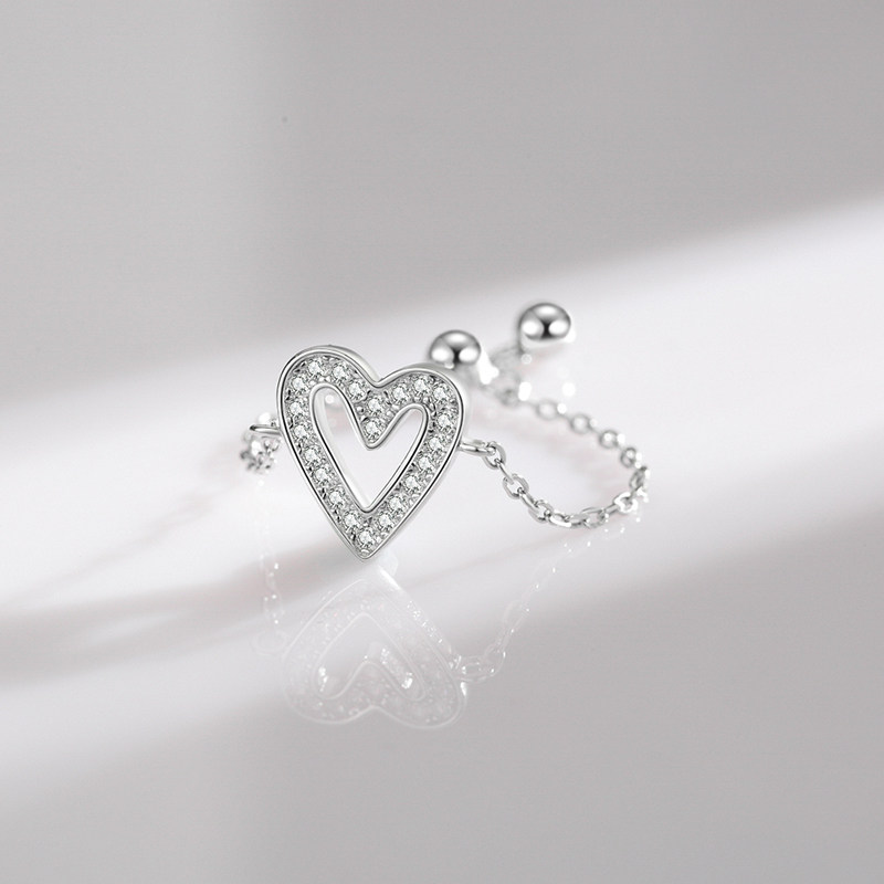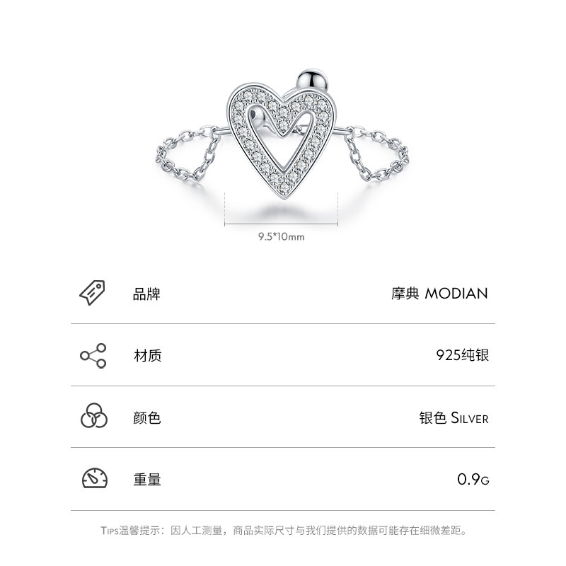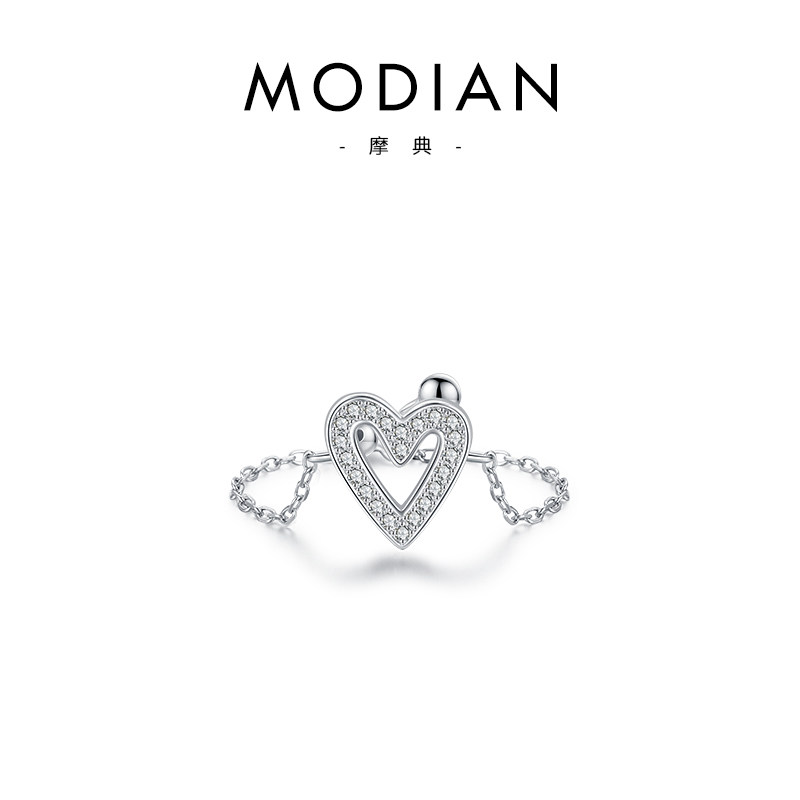 MODIANs925纯银微镶镂空爱心戒指女时尚精致小众设计感可调节饰品