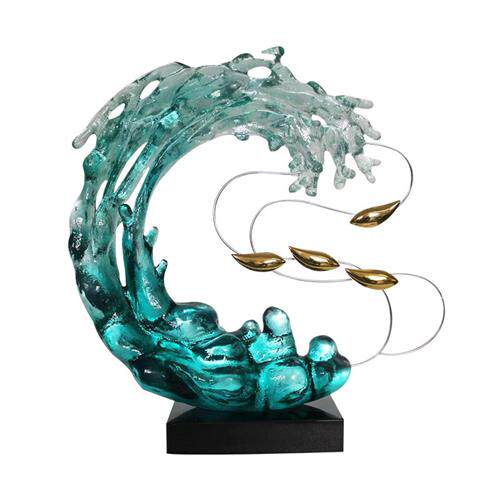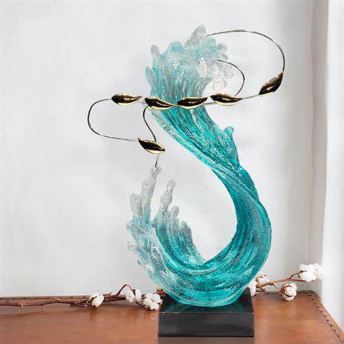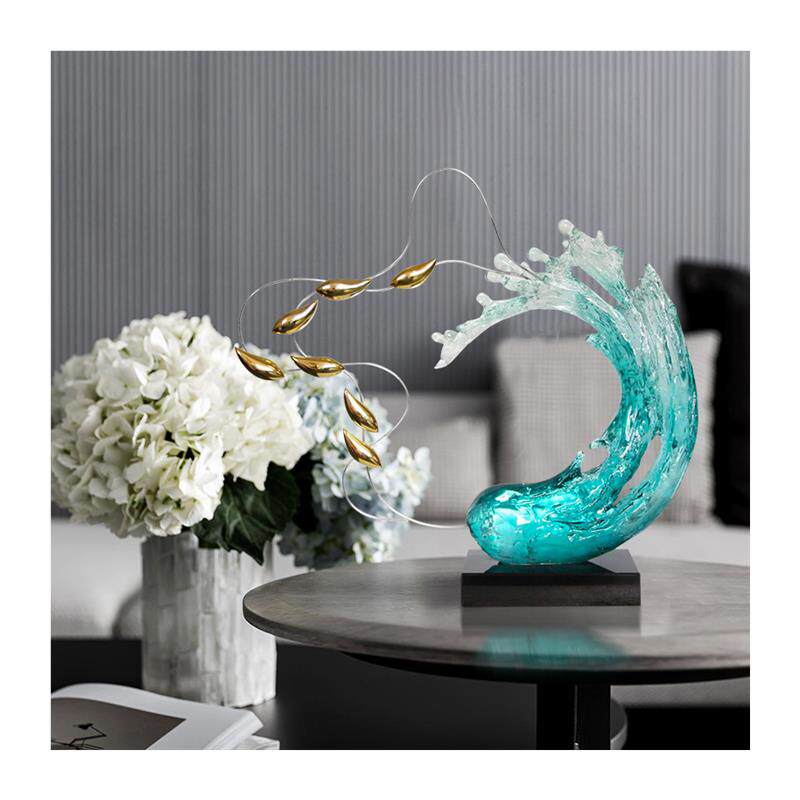 现代酒店透明树脂雕塑客厅创意摆件家居饰品海浪别墅入户玄关装饰