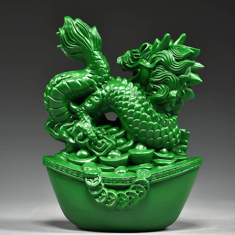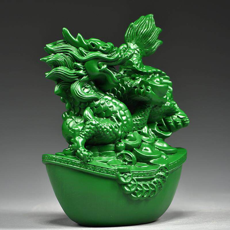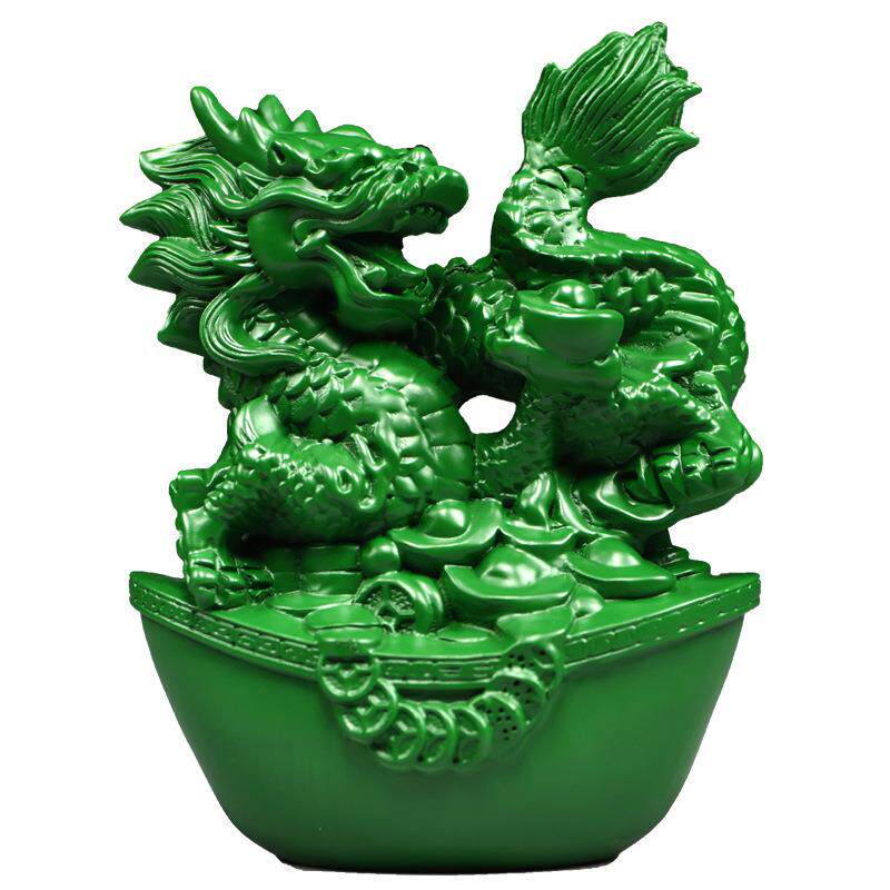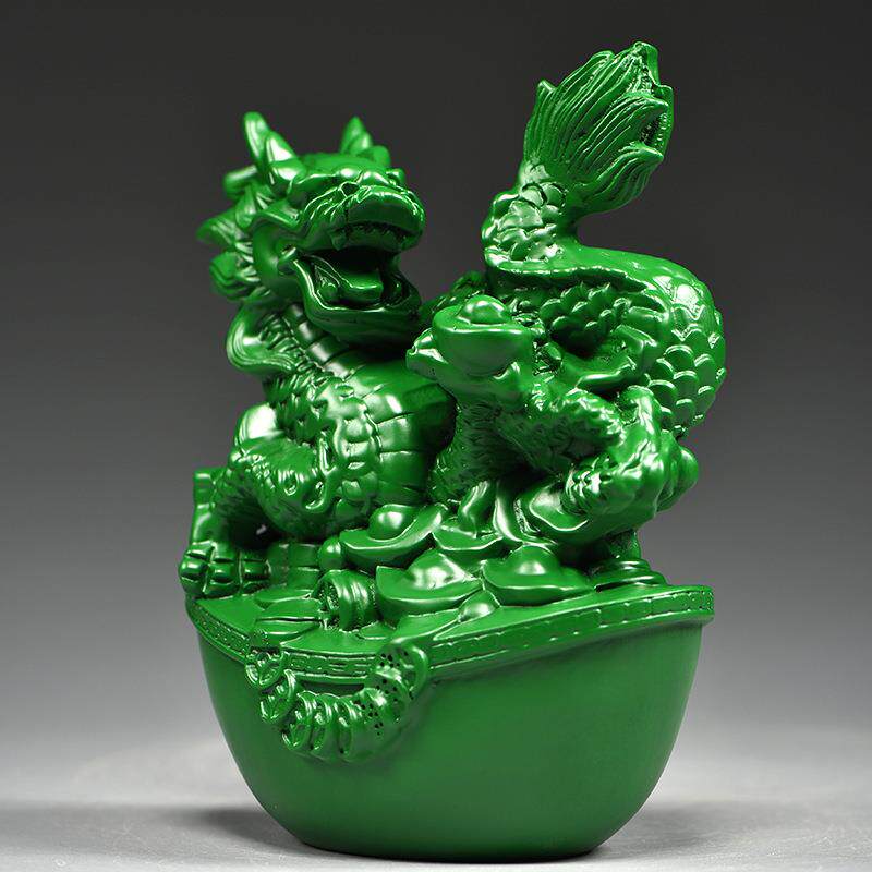 绿色实木质龙摆件十二生肖青色纯木头雕龙形工艺品客厅电视柜装饰