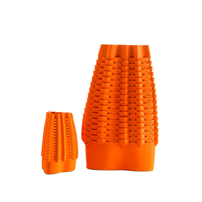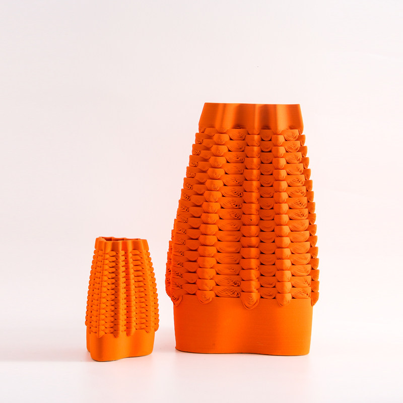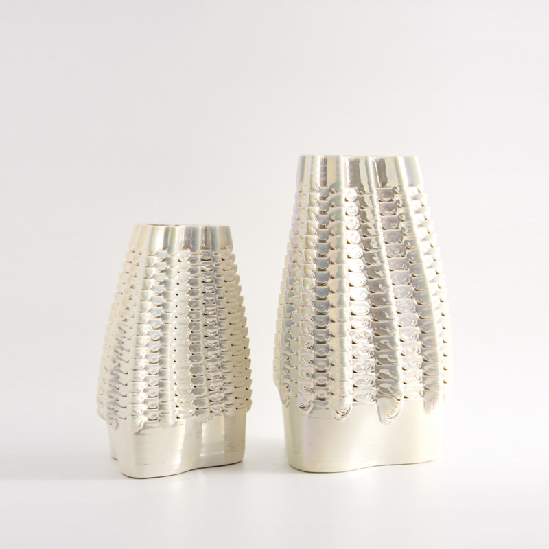 现代轻奢3D陶瓷橘红色橙色花瓶摆件简约样板间电镀七彩白花器装饰