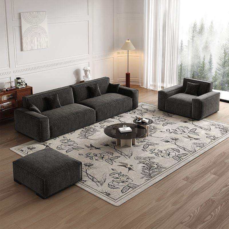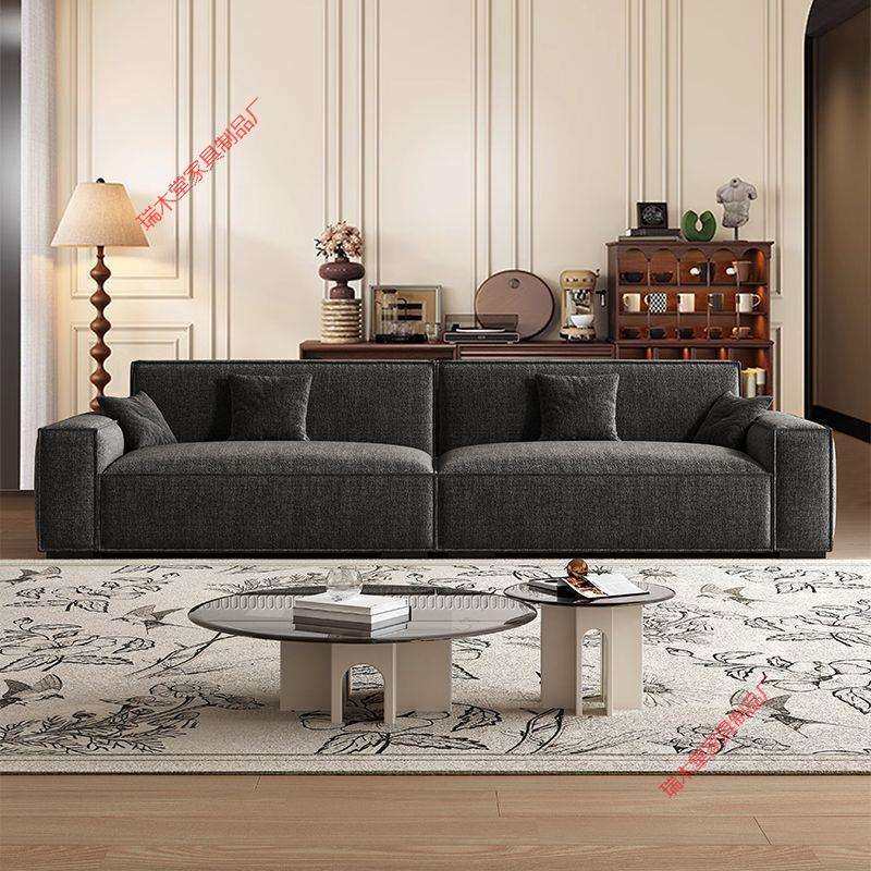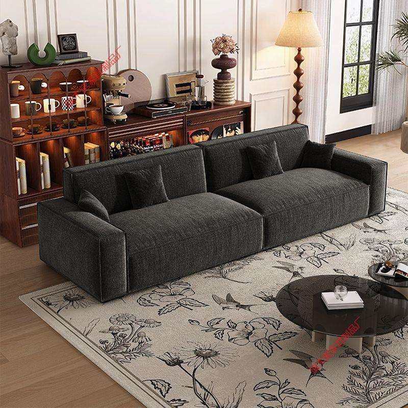 雪尼尔棉麻沙发大黑牛豆腐块现代简约直排客厅布艺实木沙发高级
