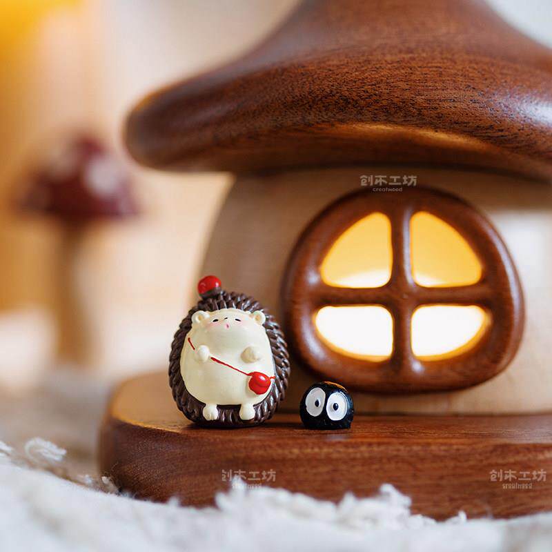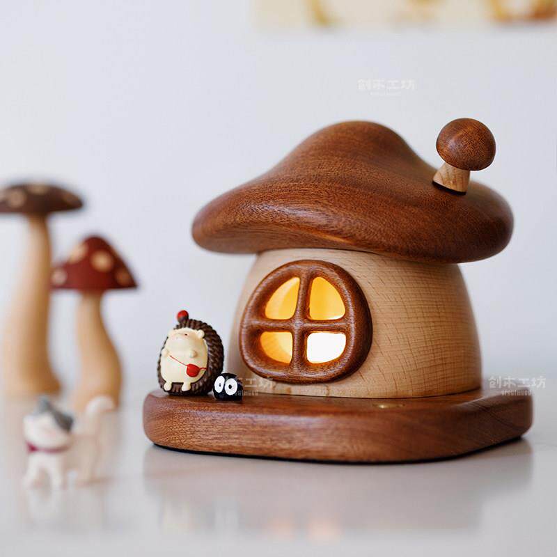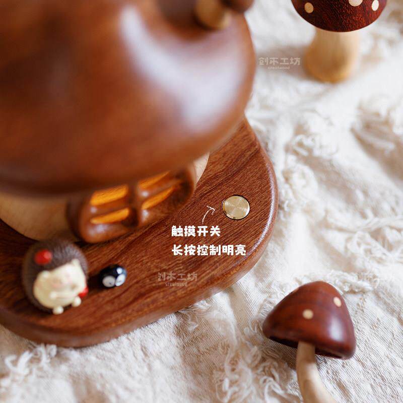 蘑菇房子小夜灯/实木充电LED小夜灯床头母婴喂奶儿童房装饰伴睡