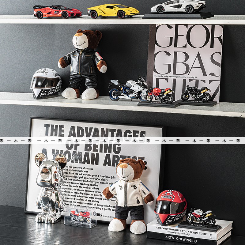 现代样板房儿童房机车主题摆件男孩房桌面赛车头盔跑车摩托模型