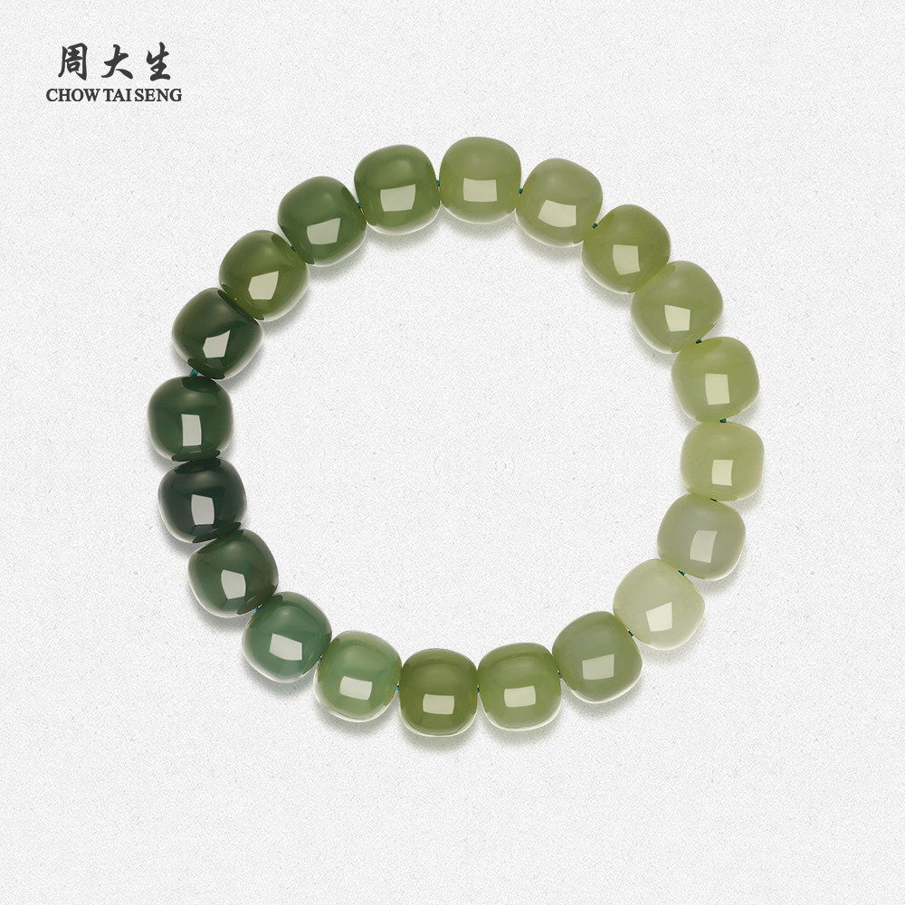周大生和田玉渐变手串男女情侣款玉石清风徐来手链生日礼物送女友