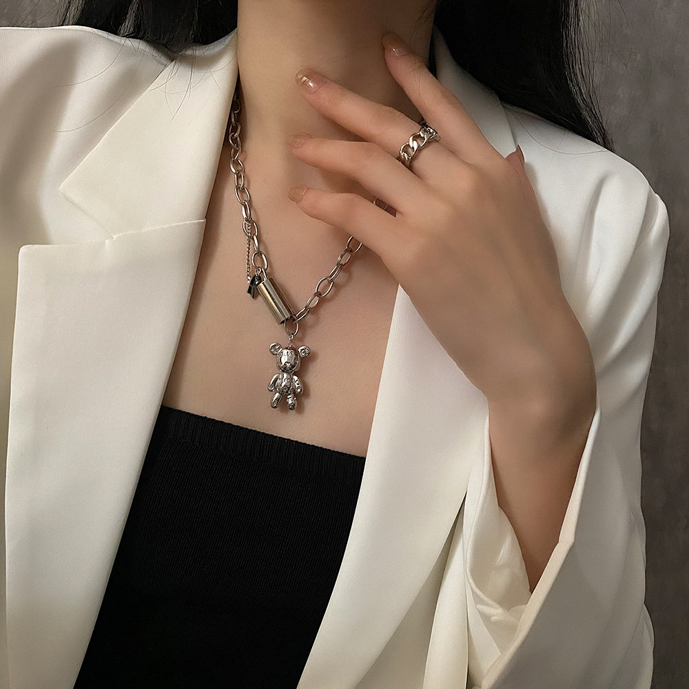 苏瑞瑞 暴力小熊项链中长钛钢镀金欧美复古小众冷淡风ins毛衣卫衣
