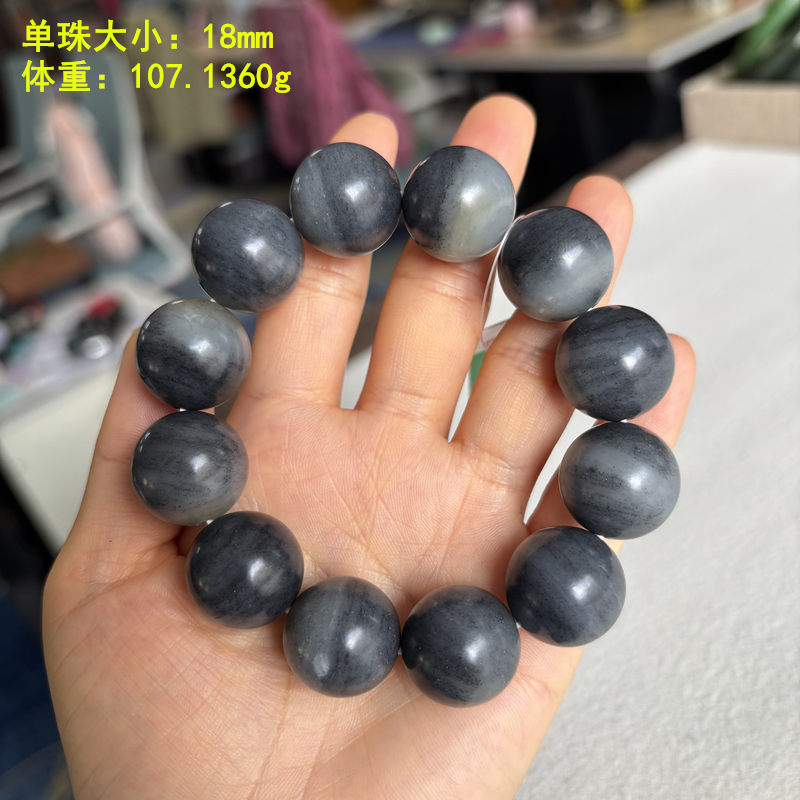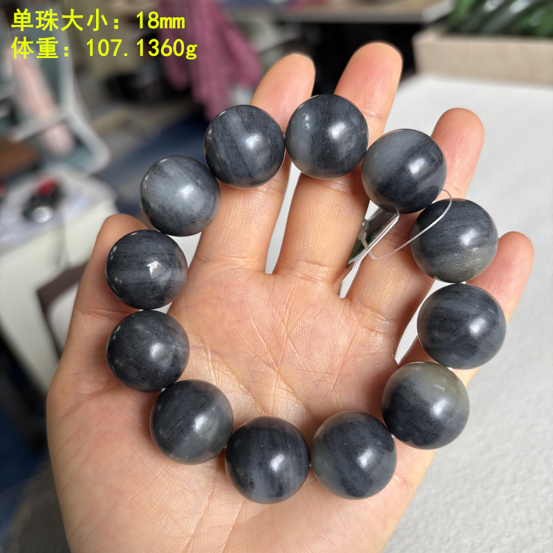 N18mm墨玉籽料圆珠手串 无原皮 朕®开仓新疆和田玉