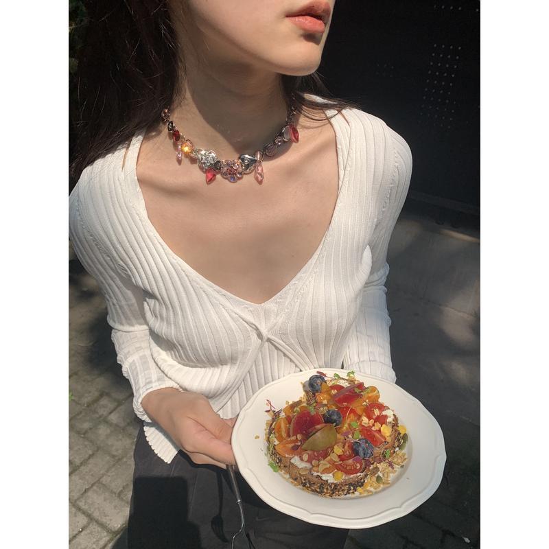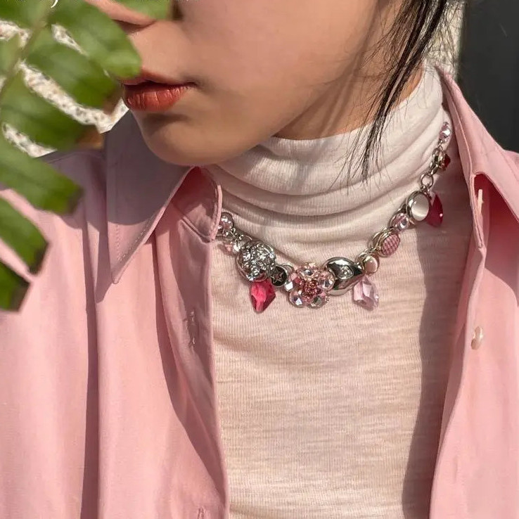 《桃色冒险》粉花瓣水晶项链choker小众时髦彩色复古个性锁骨链