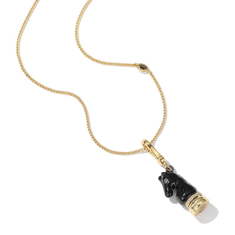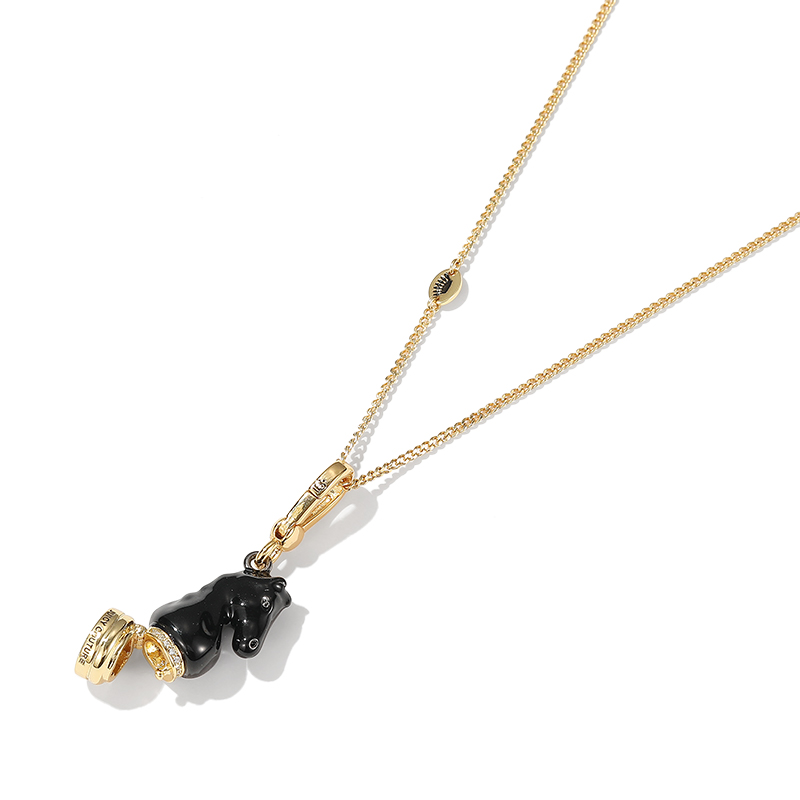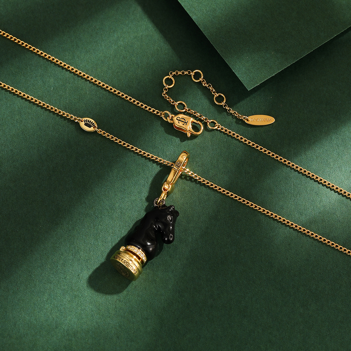 欧美潮流时尚珐琅镶钻可打开黑色国际象棋马头吊坠项链高级感挂饰