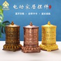 藏村电动转金筒 藏族转金轮 西藏式佛堂树脂八吉祥转经简桌面摆件