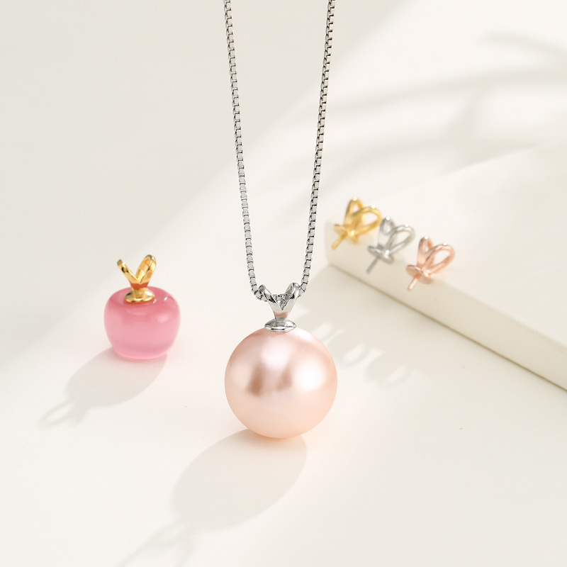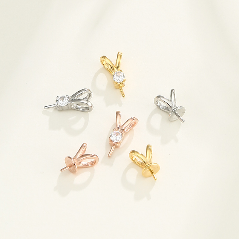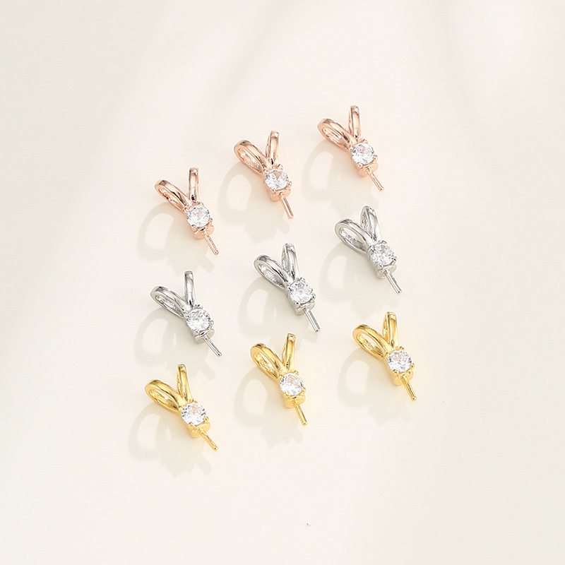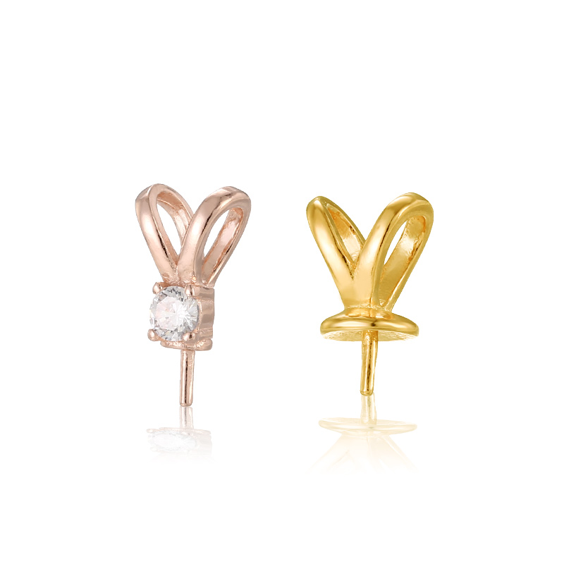 18K金V字吊坠扣头兔子头造型蜜蜡珍珠针式托纯银扣头空托diy配件