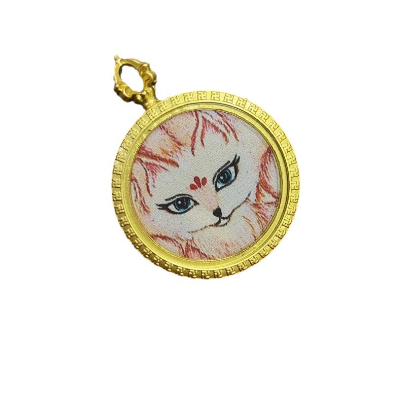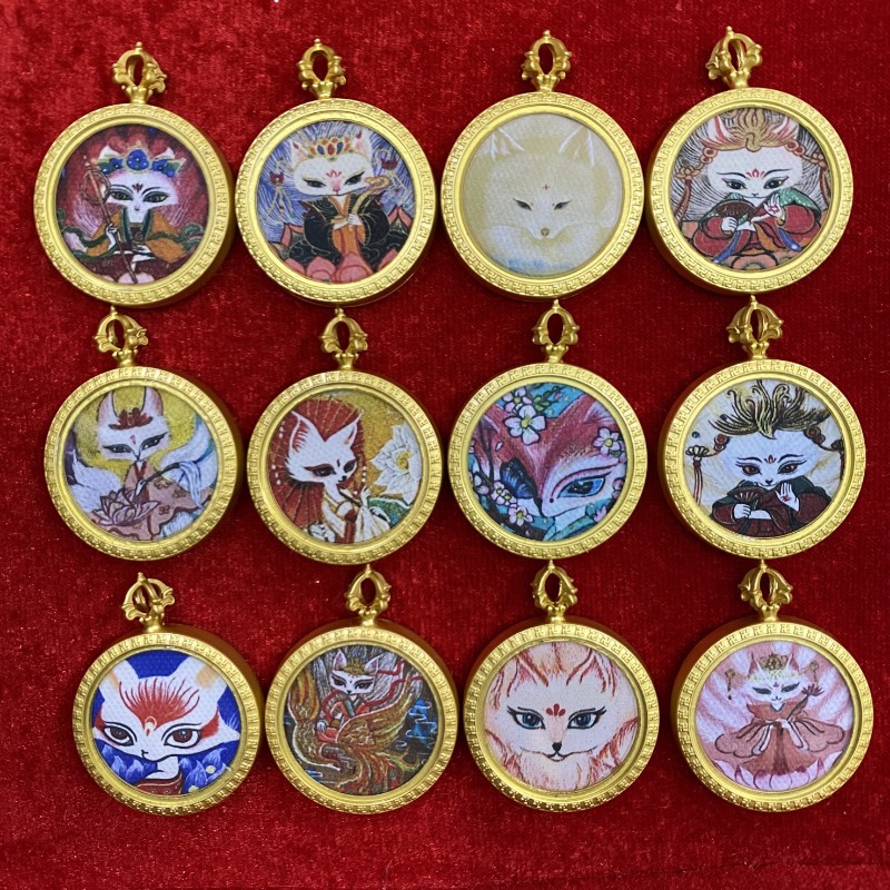 新民族风复古尼泊尔唐卡吊坠圆形合金电镀嘠乌盒九尾画盒